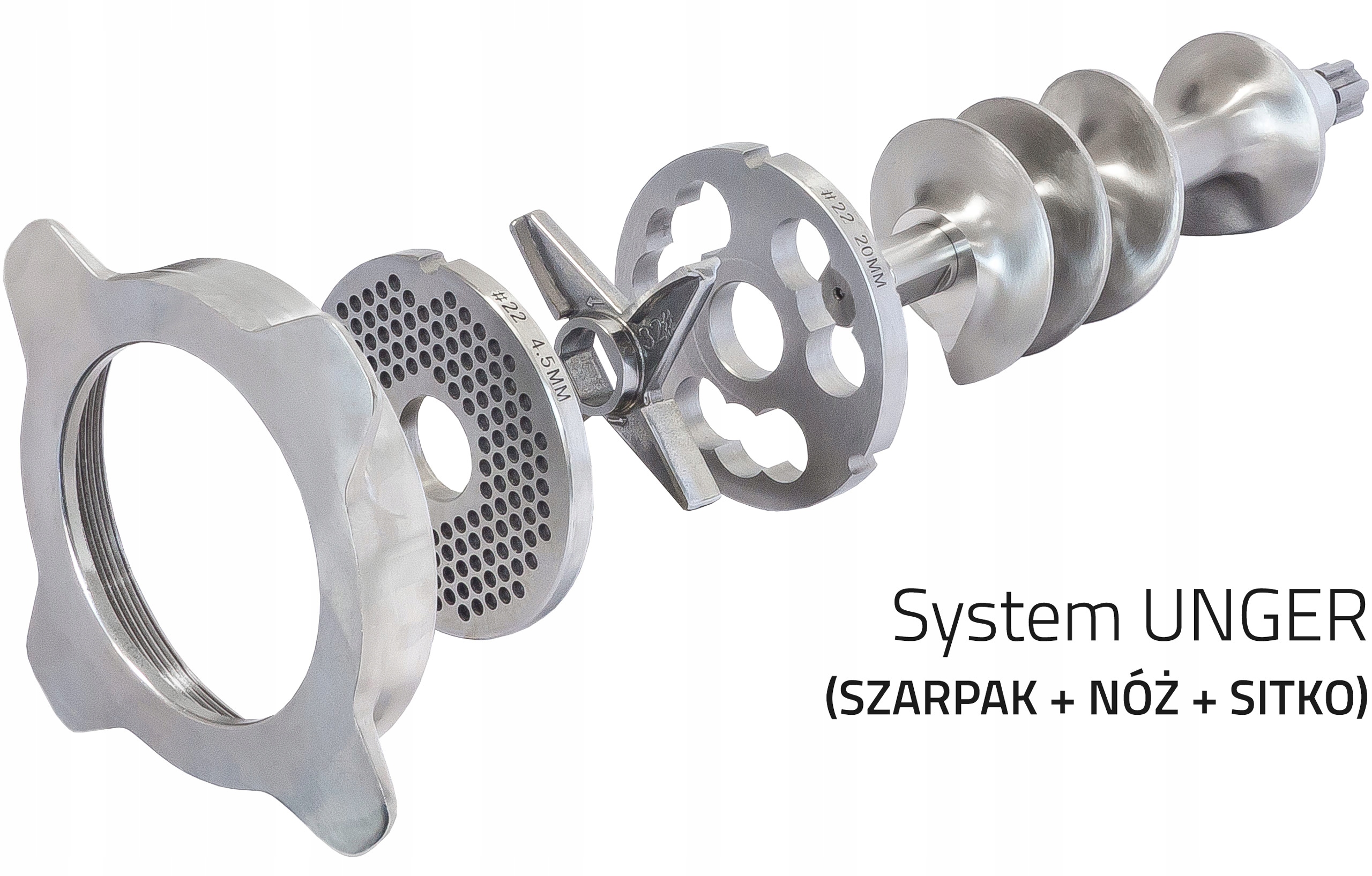 Unger: подвійна функціональність і ефективність об'єднані в одне ціле система. Продукт обробляється в один виробничий цикл за допомогою: подрібнювача, ножа та сита!!!