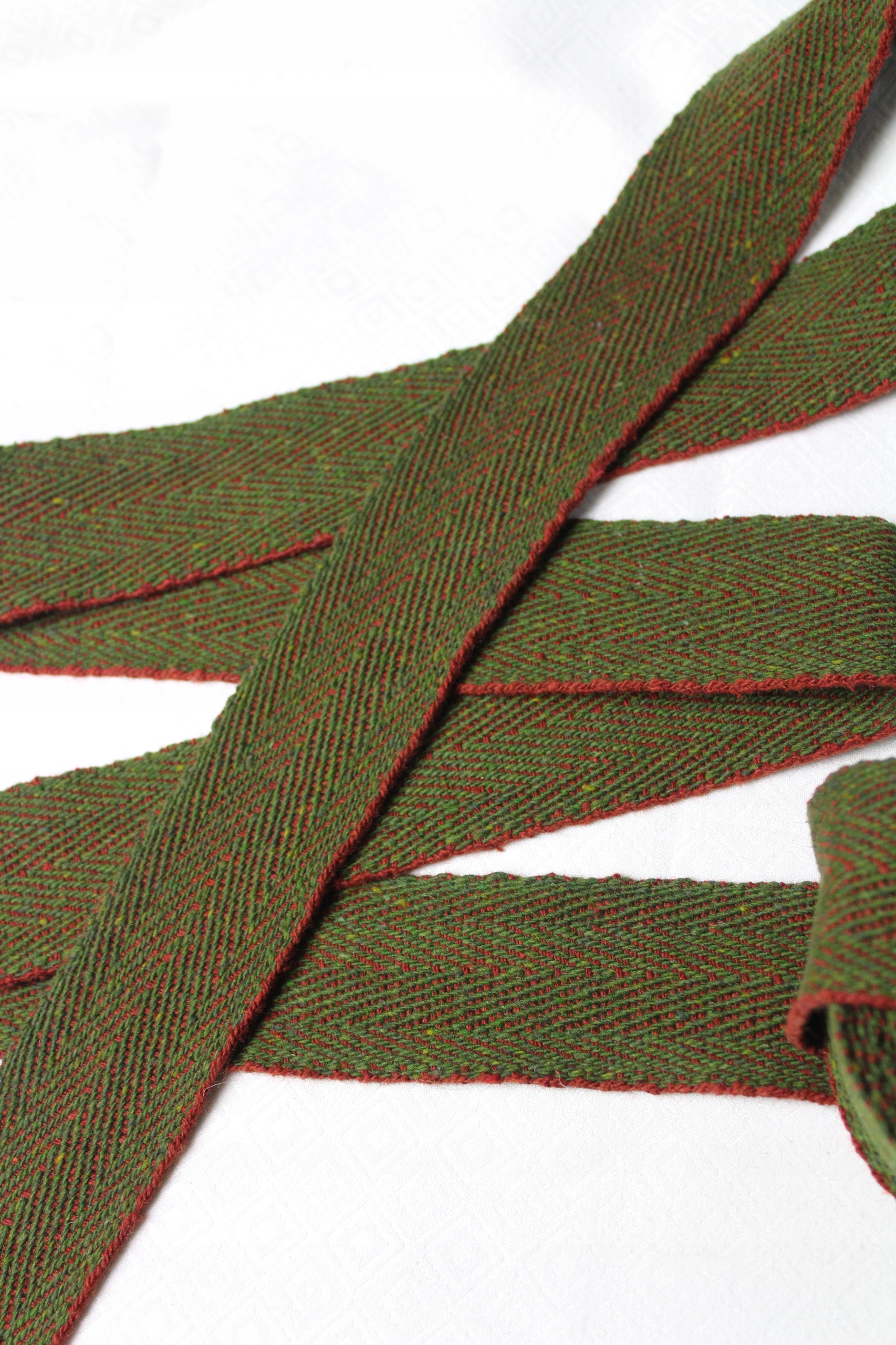 Вовняна Крайка Ручна Ткана Ремінець Обгортки 50 мм ЗЕЛЕНИЙ - ЧЕРВОНИЙ