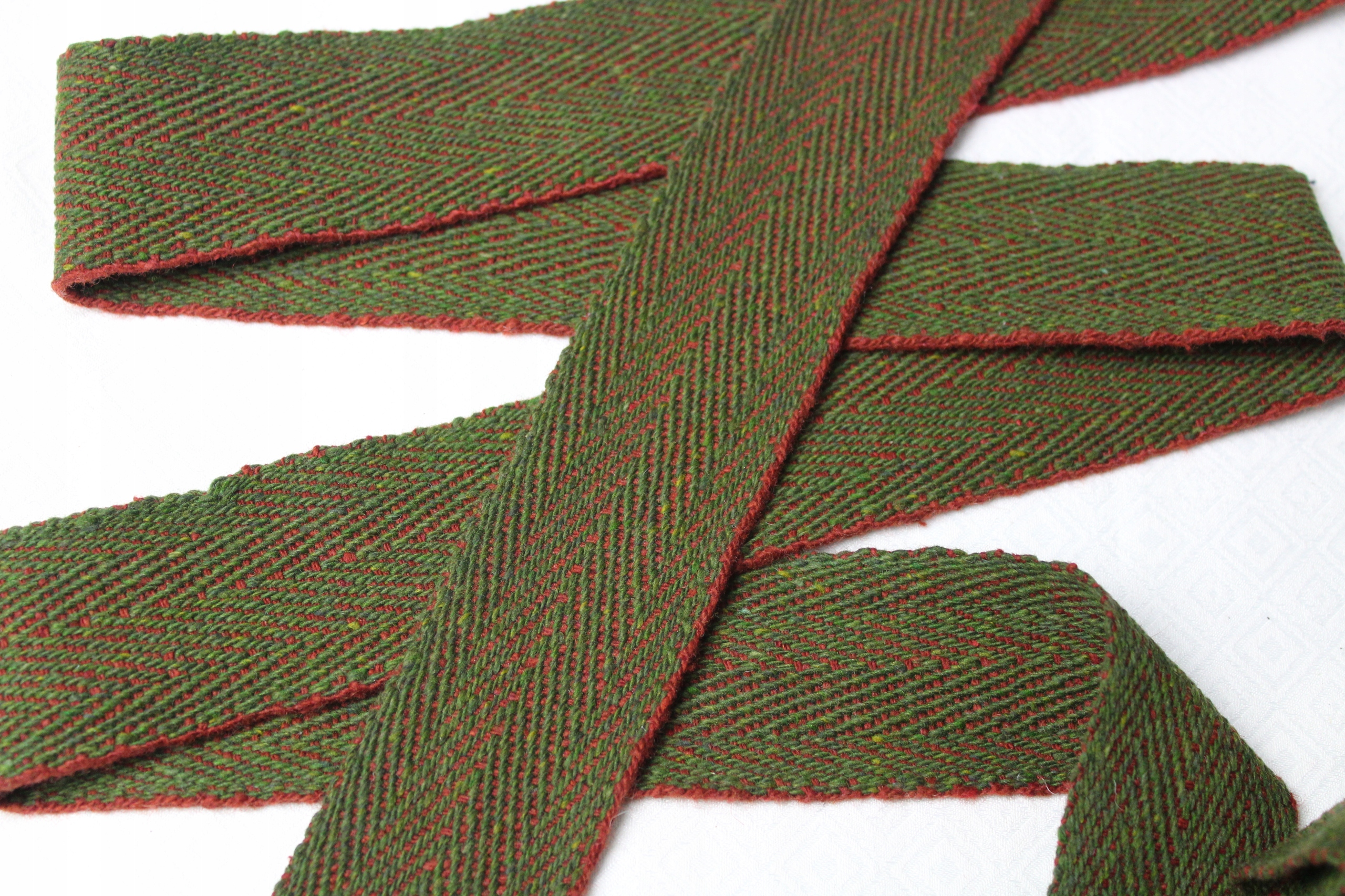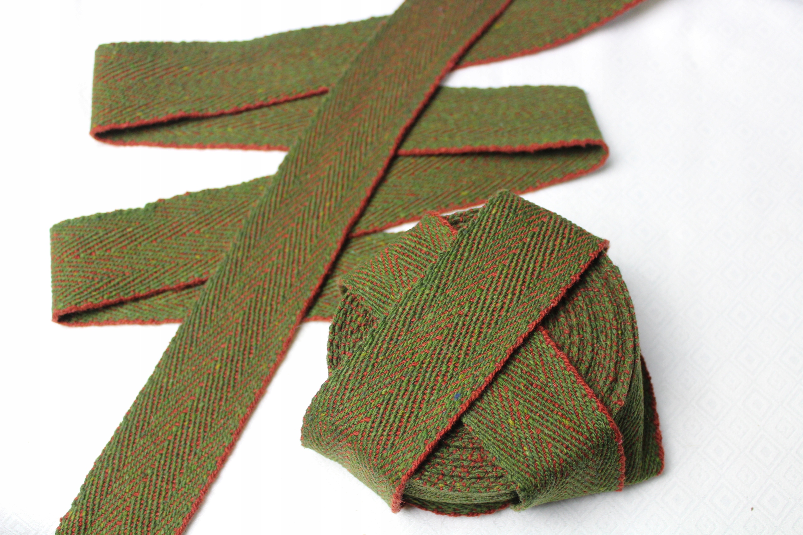 Я пропоную вам рукотворний пояс (країна) на цьому аукціоні , виготовленому з 100% вовни , ідеально підходить для історичної реконструкції - особливо для гри в ранні середні середньовіччя. Пояс вплітається на традиційний візерунок ялинки, що надає йому справжній вигляд і ідеально вписується в історичні реалії. Jodełka