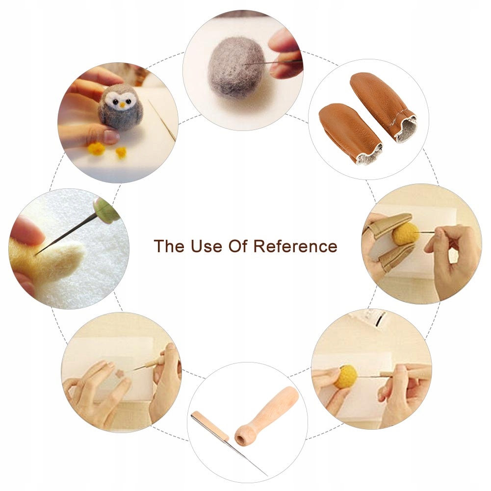 1. Цей комплект враховує вашу безпеку, губка для валяння та накладки для пальців зменшують небезпеку поранитися під час виконання.