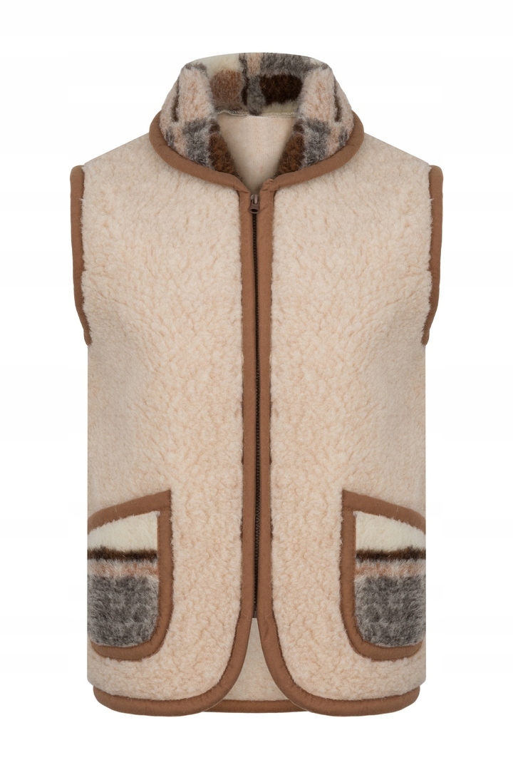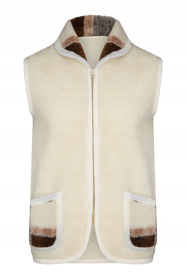 Високоякісна вовняна жилетка з коміром, ретельно виготовлена. Ідеально підходить на кожен день і пору року. Жилетка застібається на блискавку. Декоративний комір також може захистити шию в холодні дні. Завдяки універсальному крою, його можуть носити як жінки, так і чоловіки. Завдяки властивостям вовни тіло підтримує постійну температуру, що перетворюється на тепловий комфорт при щоденному використанні. Польський продукт, який гарантує повне задоволення.