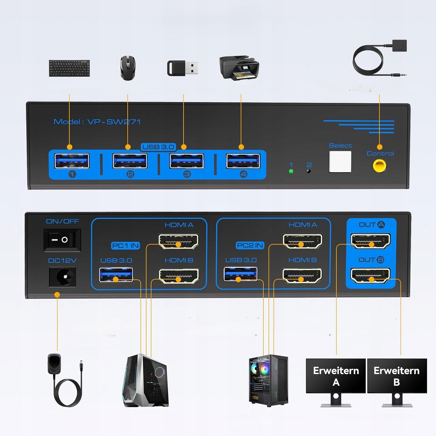 AILVLVNG 4K120Hz HDMI KVM Switch 2 PCs 2 Monitors USB 3.0 8K60Hz KVM Switch for 2 PCs shared two monitors and 4 USB peripherals such as клавіатури, миші, принтери