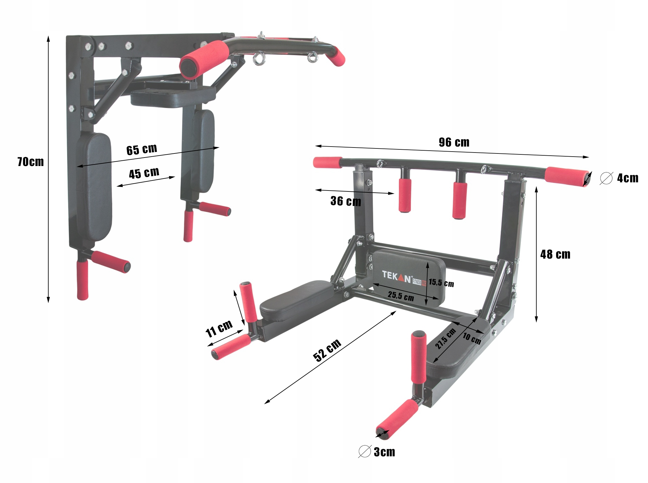 Весь це вішається на стіну за допомогою спеціальних гачків, які входять у комплект. Якщо ви хочете змінити розташування оснащення, просто змініть положення елементана гачках. Виробник також подбав про комфорт занять, доповнивши перила зручною спинкою і підлокітниками, обтягнутими тканиною.