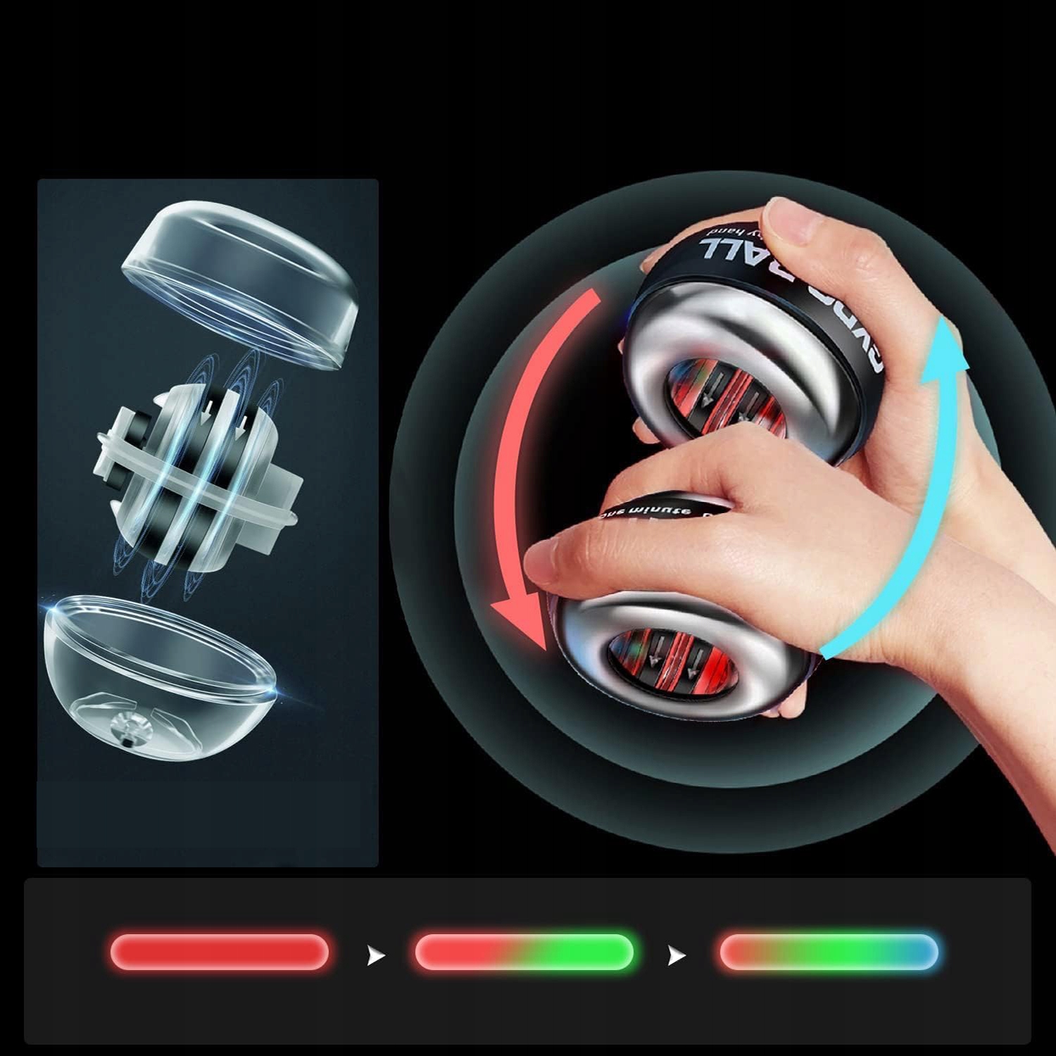 ✅ Гіроскопічний м’яч зміцнить пальці, зап’ястки, кисті, передпліччя, руки, трицепси та біцепси.