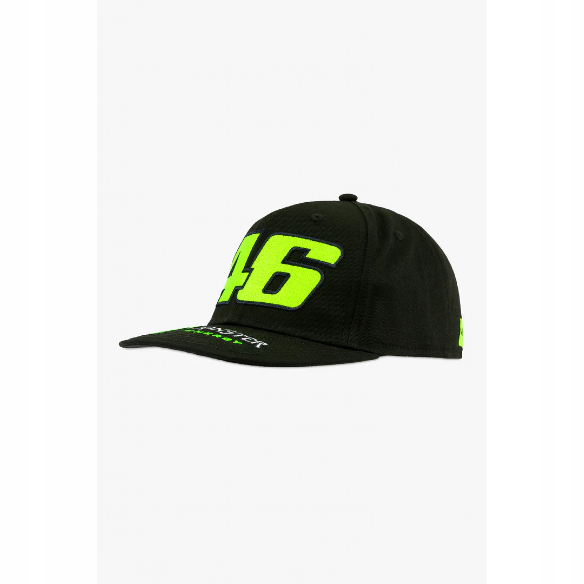 Бейсболка з колекції Monster VR46 2022 Модель з плоскою бейсболкою, виконана з бавовни. На передній панелі надрукована велика цифра 46 Valentino Rossi, а на піку логотип Monster Energy.