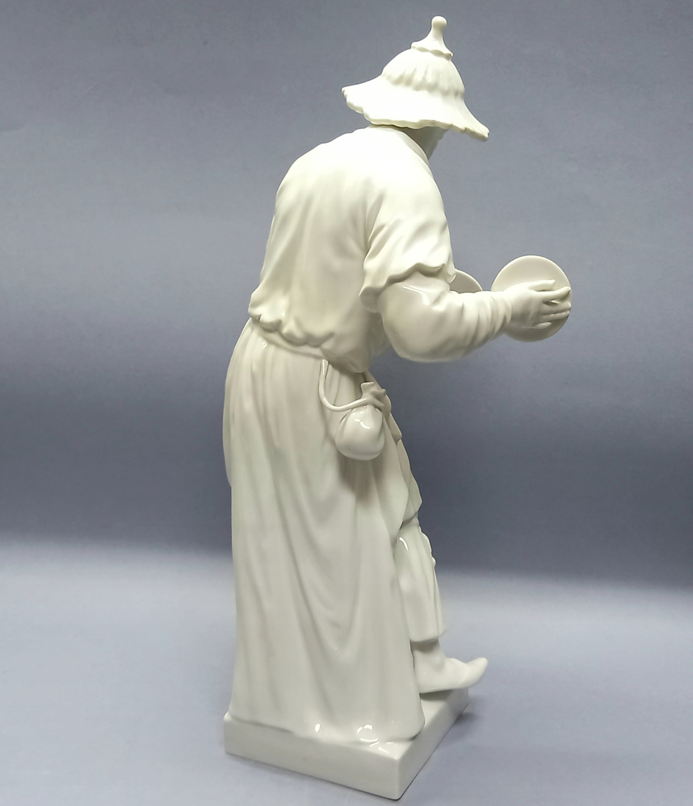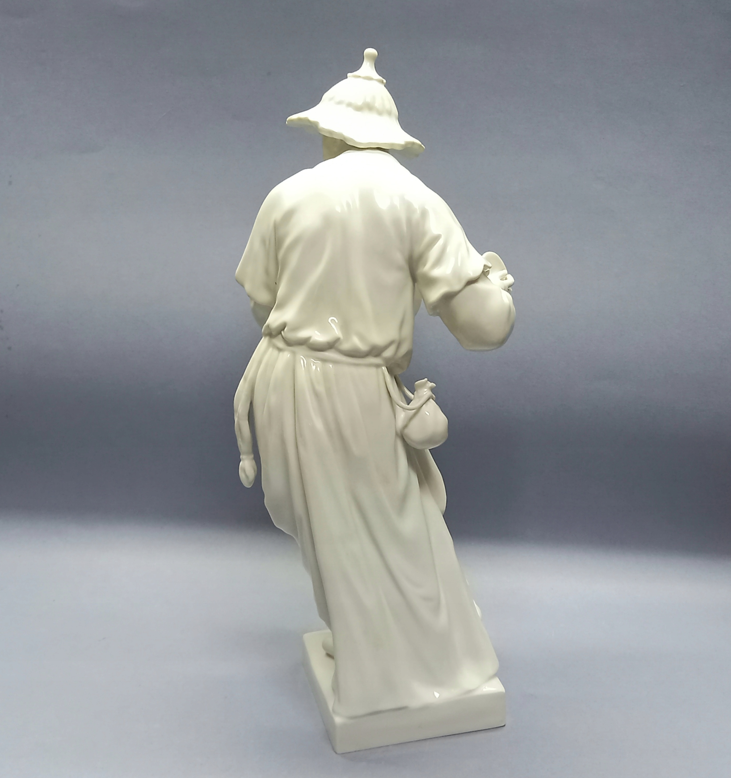 Повністю пластична фігура чоловіка, що стоїть на квадратному постаменті - Малабар у типовому сільському костюмі, з конічним капелюхом.
