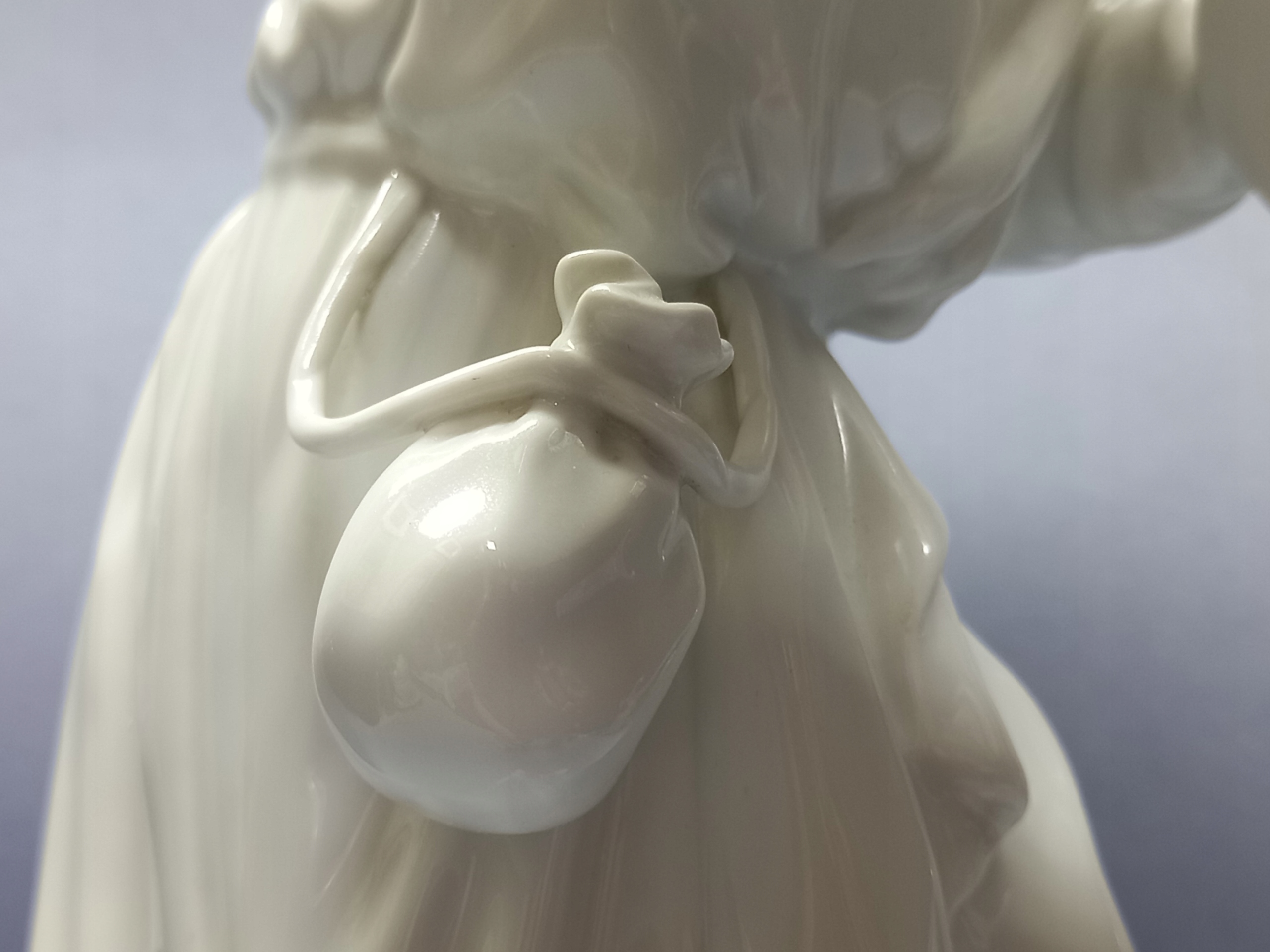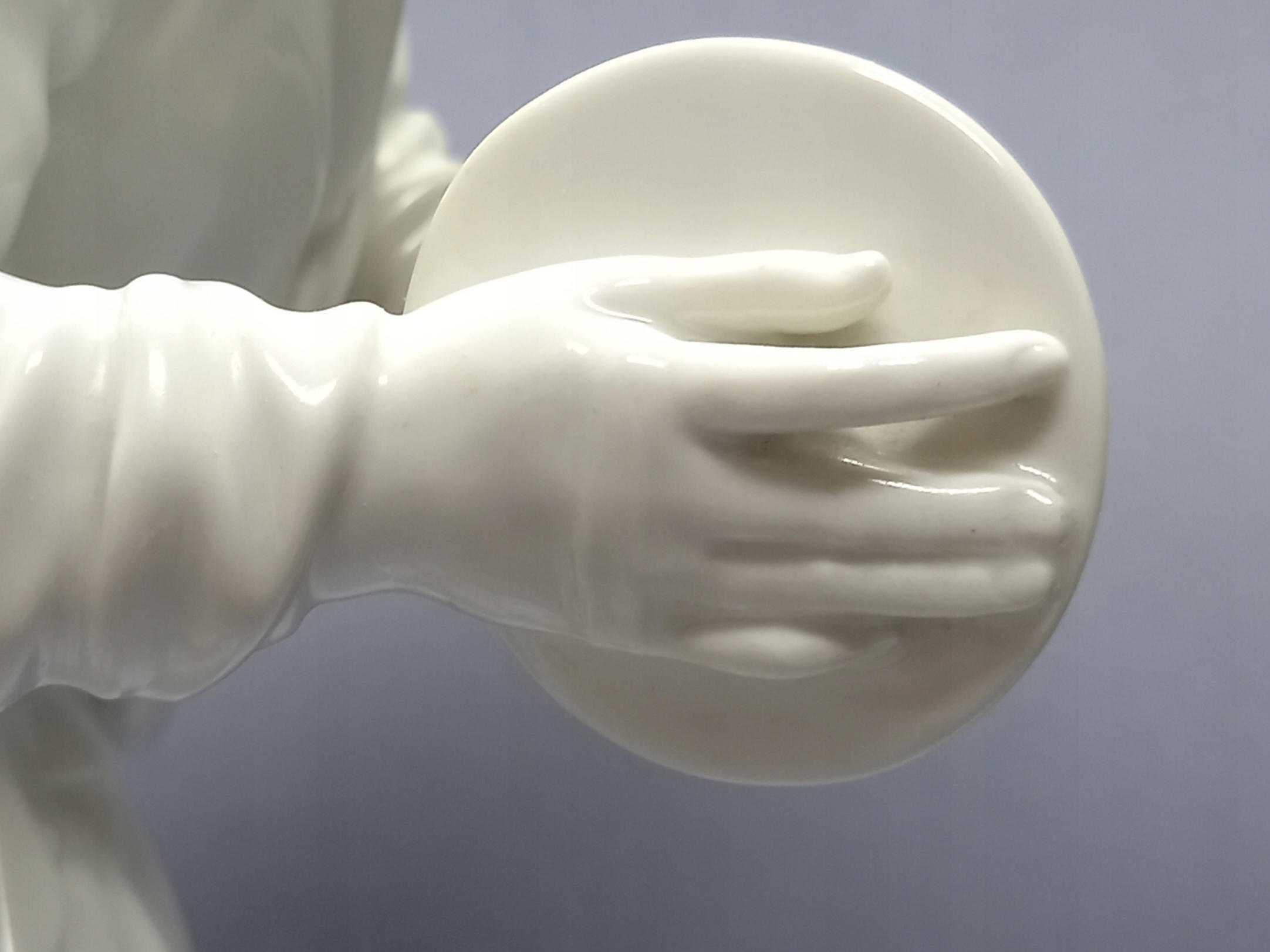 Біла порцеляна, відліплена з великою увагою до деталей, глазурована.