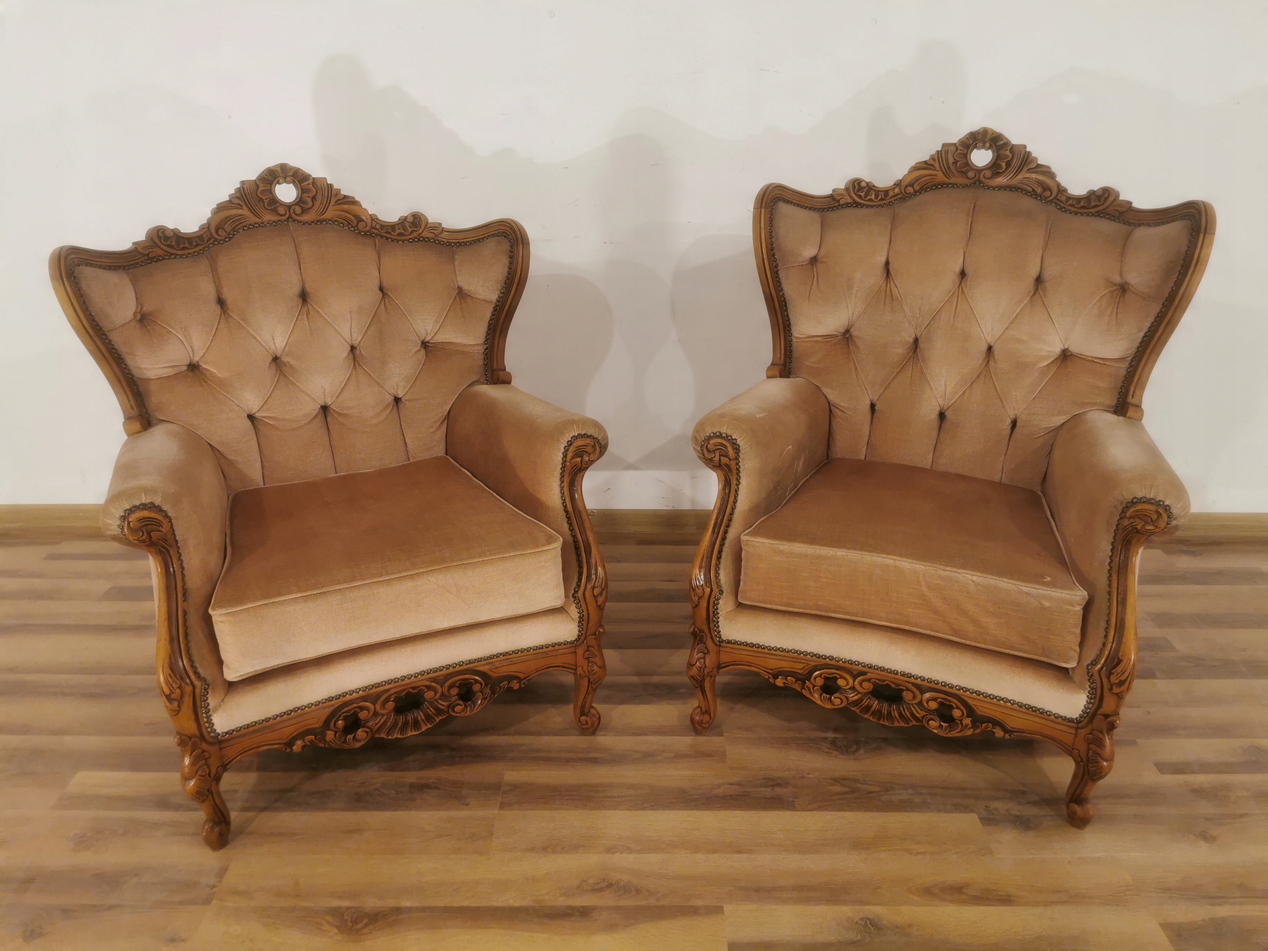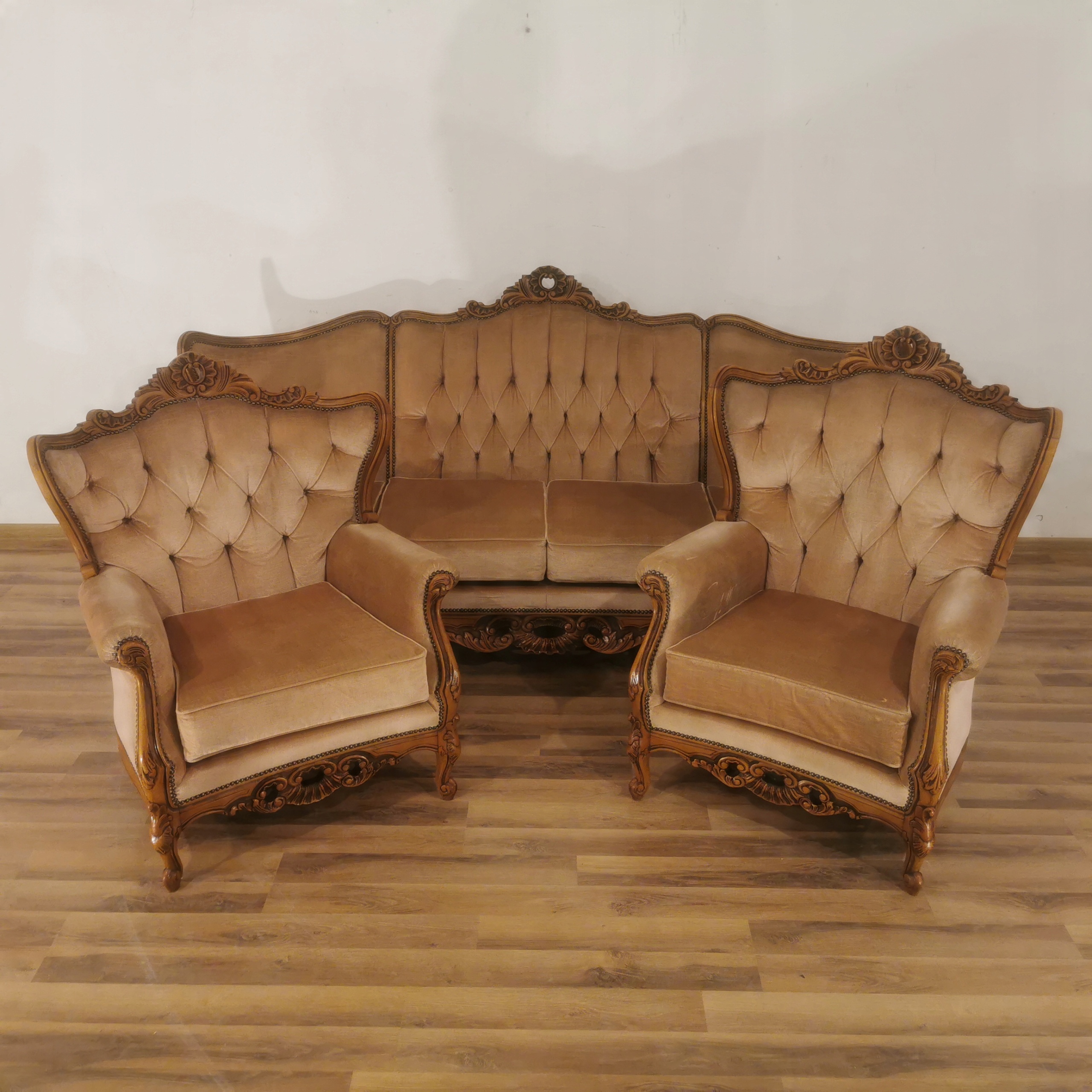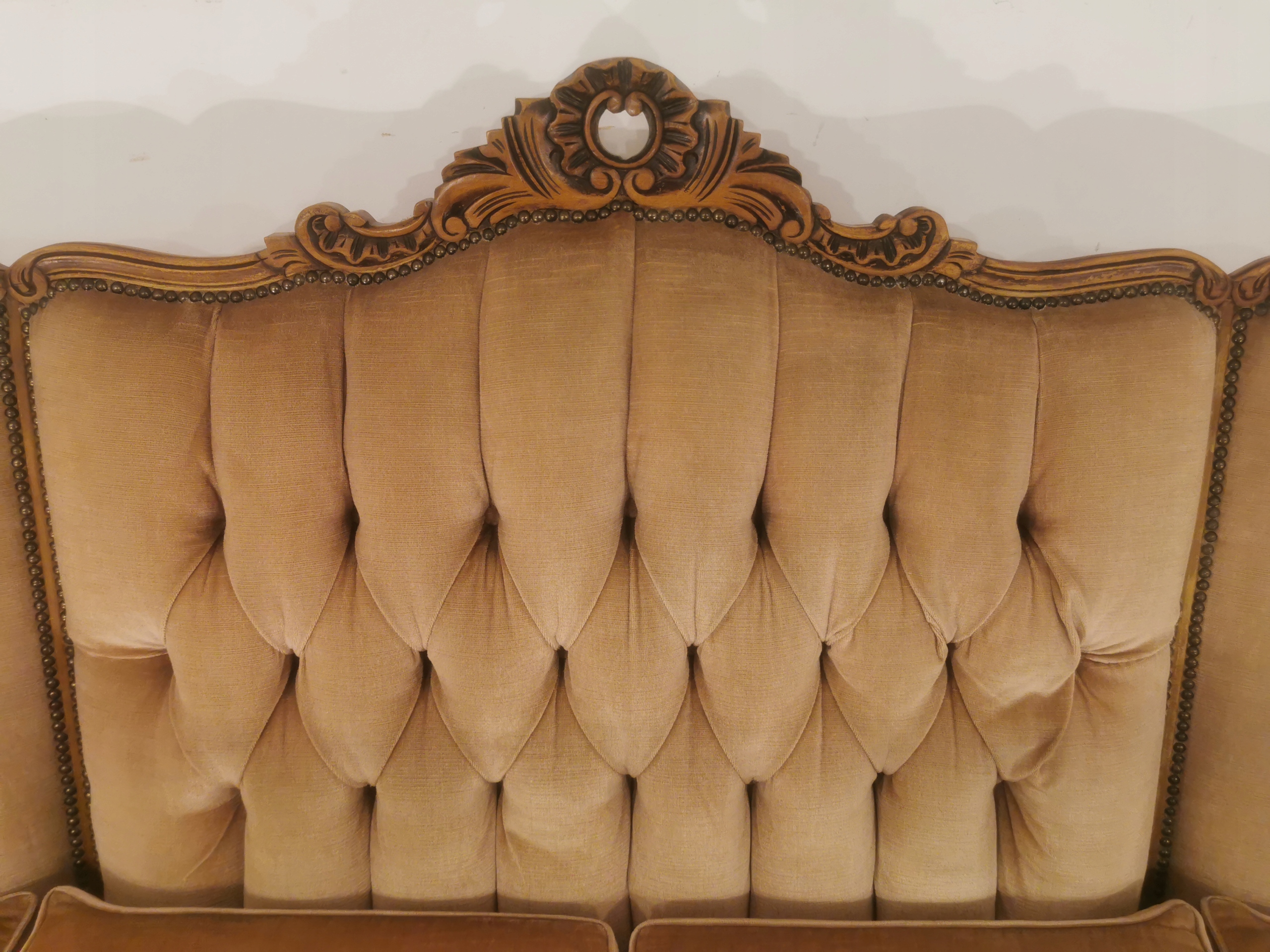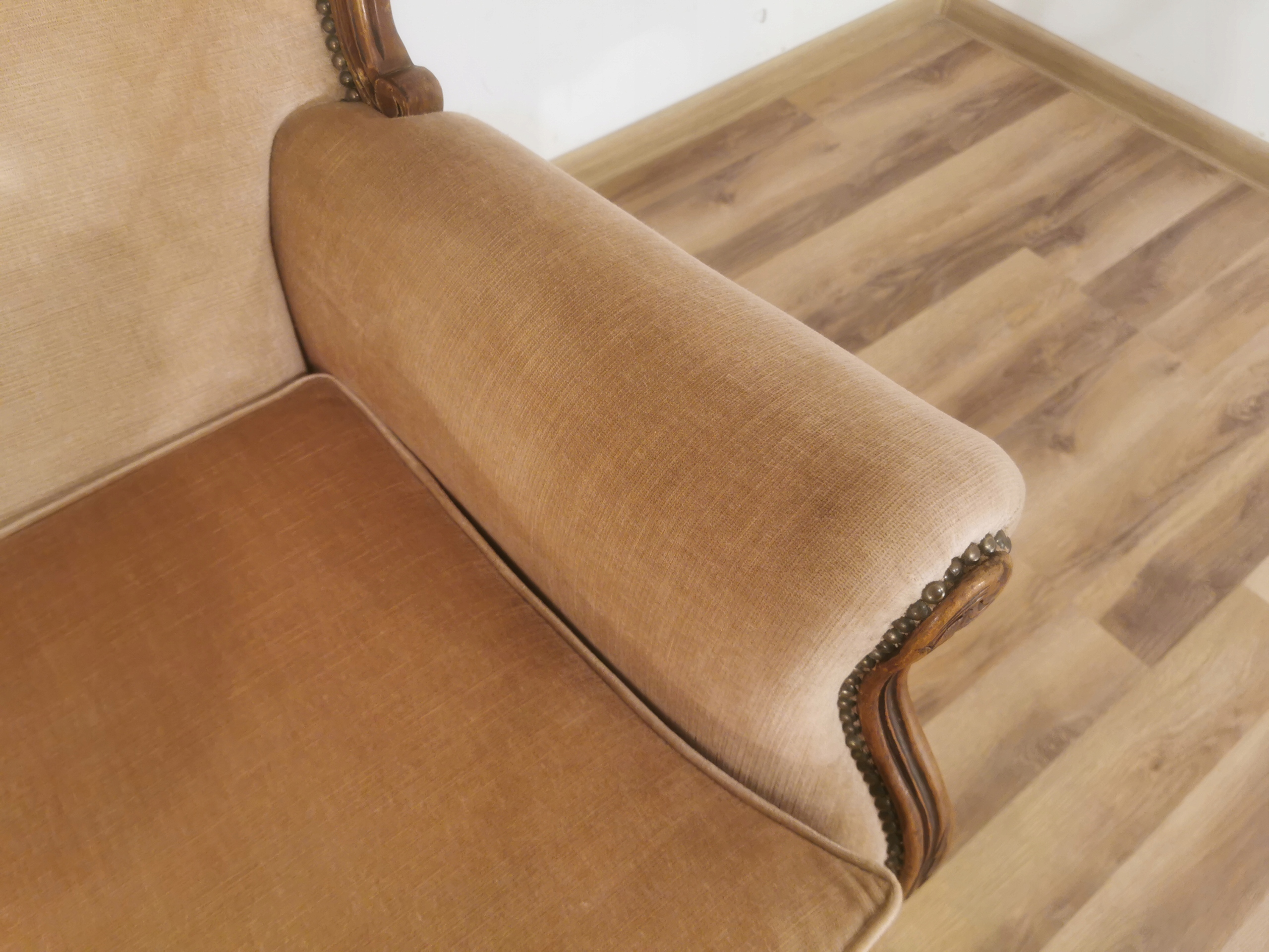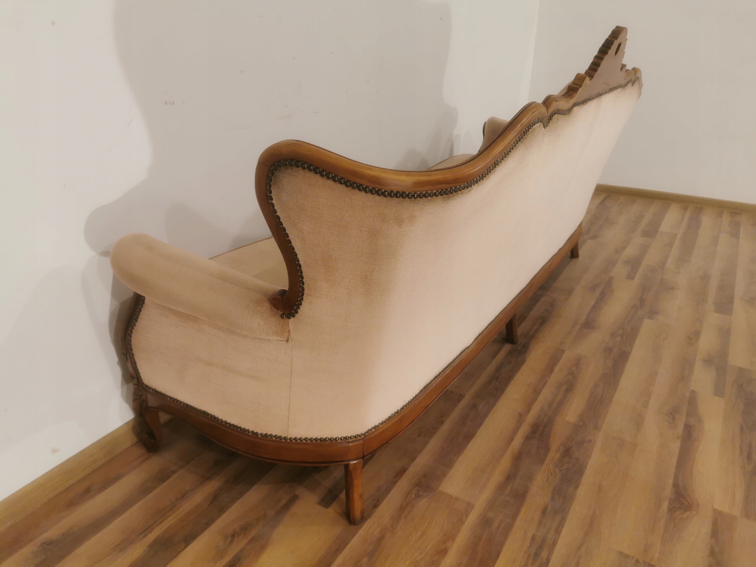 Дерев'яні елементи з бука витончено вписані в силует дивана, прикрашені складним різьбленням.