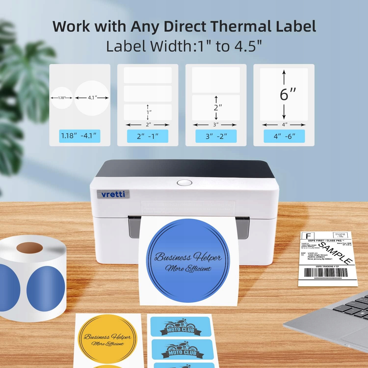 Vretti Bluetooth Thermal Label Printer 4x6 USB, 72 етикетки/хв