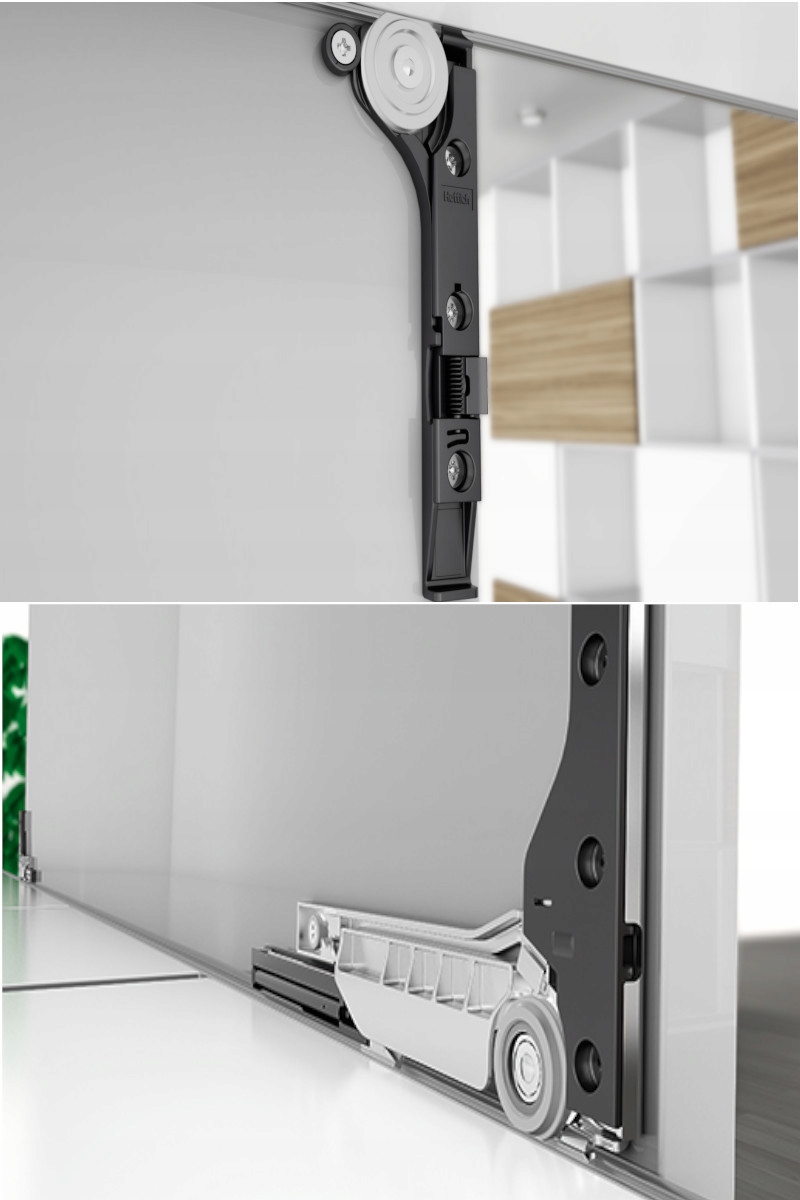 Система SlideLine Mвиводить меблі на новий рівень. Використовується як практичний декоративний елемент у меблях для вітальні, шафах, навісних кухонних шафах, а також у ванній та офісних меблях. Цю універсальну систему можна використовувати у всіх популярних меблевих конструкціях. Легко і швидко встановлюються двері вагою до 30 кг як з дошки, так і скляних фасадів і з алюмінієвою рамою<. /b>. Також можна встановити два розсувних фасади в один профіль – один над іншим. Амортизація Silent System вбудована в ходовий елемент і гальмує двері в напрямку закривання. Якщо використовуються 2 або 3 двері, гальма також у напрямку відчинення та в напрямку зіткнення . b>