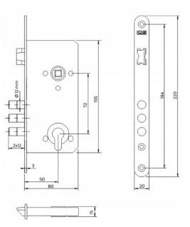 ВРИЗНИЙ ЗАМОК НА ДВЕРЯХ 72/50 ЛІВА/ПРАВА ВСТАВКА 22ММ КИШЕНЯ