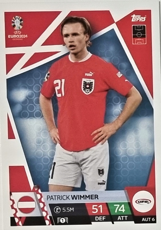 ЄВРО 2024 TOPPS МАТЧ ATTAX AUT 6 ПАТРІК ВІММЕР АВСТРІЯ