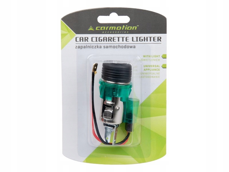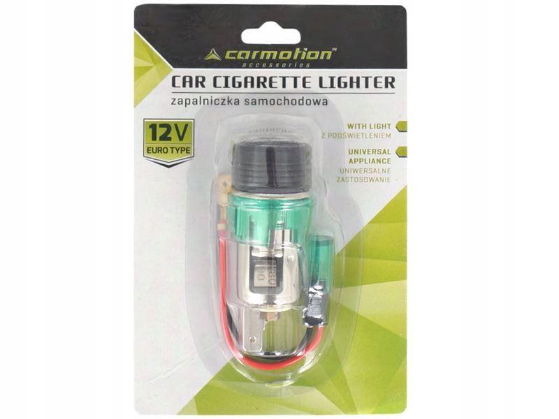 Гніздо прикурювача з живленням 12В для легкових автомобілів та автобусів. Зелене підсвічування дає унікальний ефект. Нитка розжарення покрита гумою.
