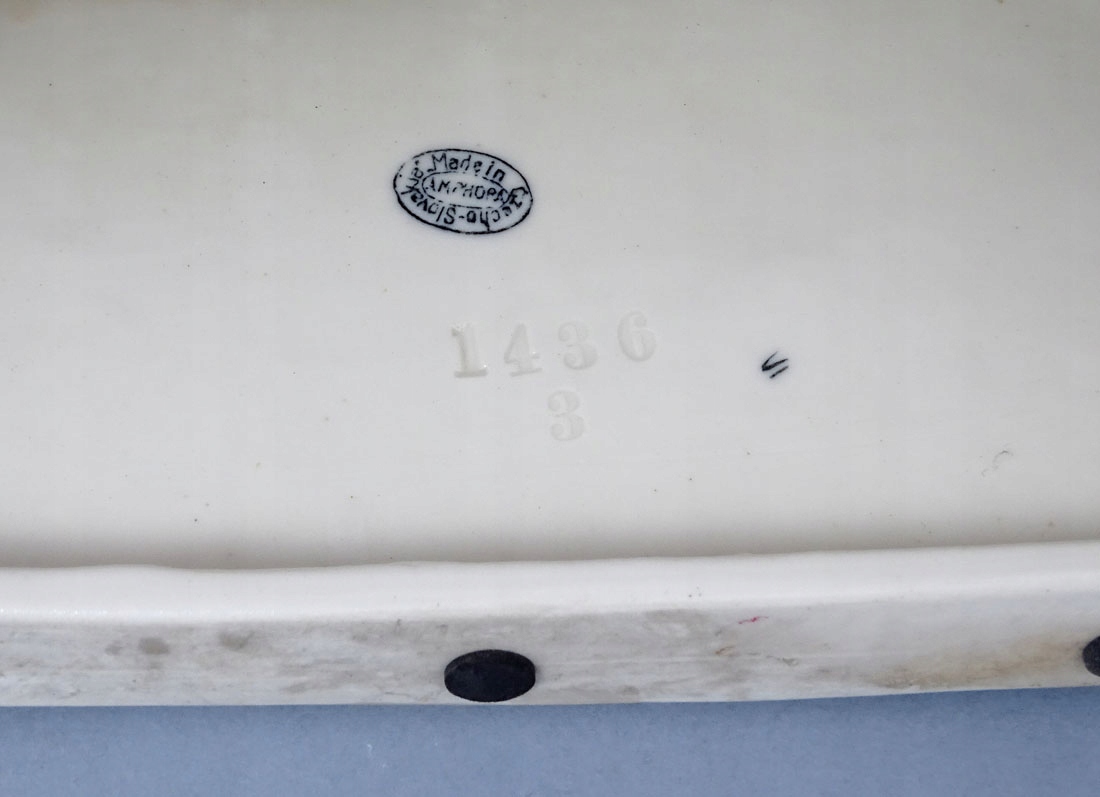 Фарфор із підписом «Vogt Wien», ймовірно, виготовлений у фабричній школі дизайну в період, коли фабрика мала королівський ордер. від австрійського двору у Відні. Знизу — клеймо Чехо-Словацької фабрики «Амфора», ран 20 століття