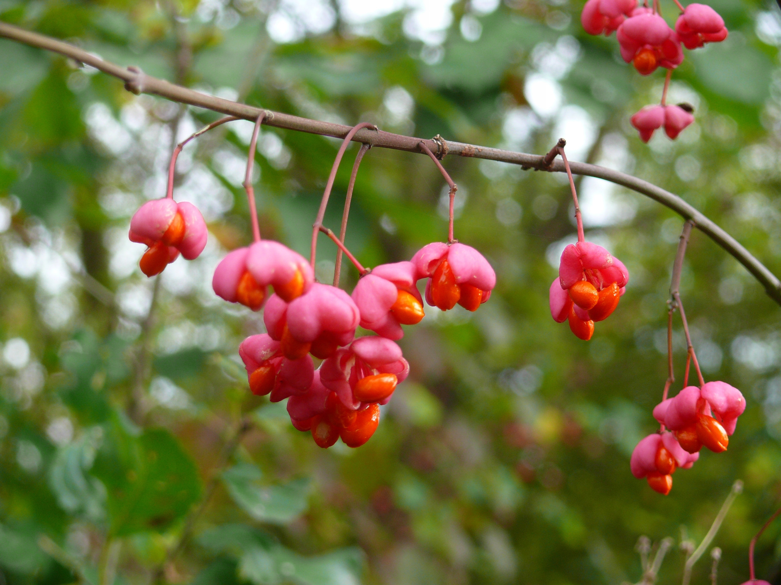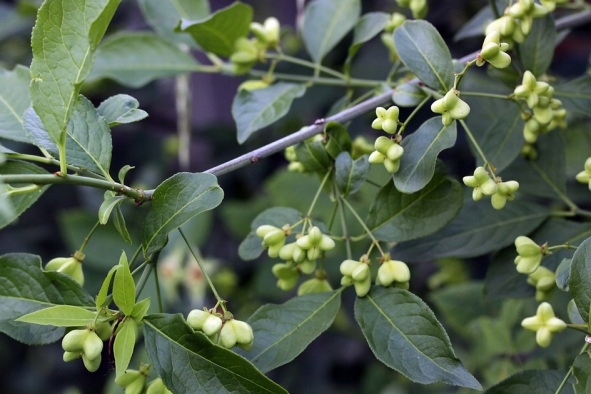 Місцевий чагарник, поширений по всій країні. У висоту досягає 2-4 м. Крона досить пухка. Стебла зелені, жорсткі, покриті тонкими пробковими смужками. Листя еліптичні, 3-8 см завдовжки. Квітки дрібні, непоказні, зібрані по 3-7 кистей. З'являються в травні, з квіток утворюються оригінальні коробочкові плоди, чотирикамерні, рожево-кармінові, дуже декоративні. Через деякий час вони лопаються і в помаранчевих венчиках з’являються насіння. Дозрівають у вересні-жовтні. Це дуже ефектна прикраса.