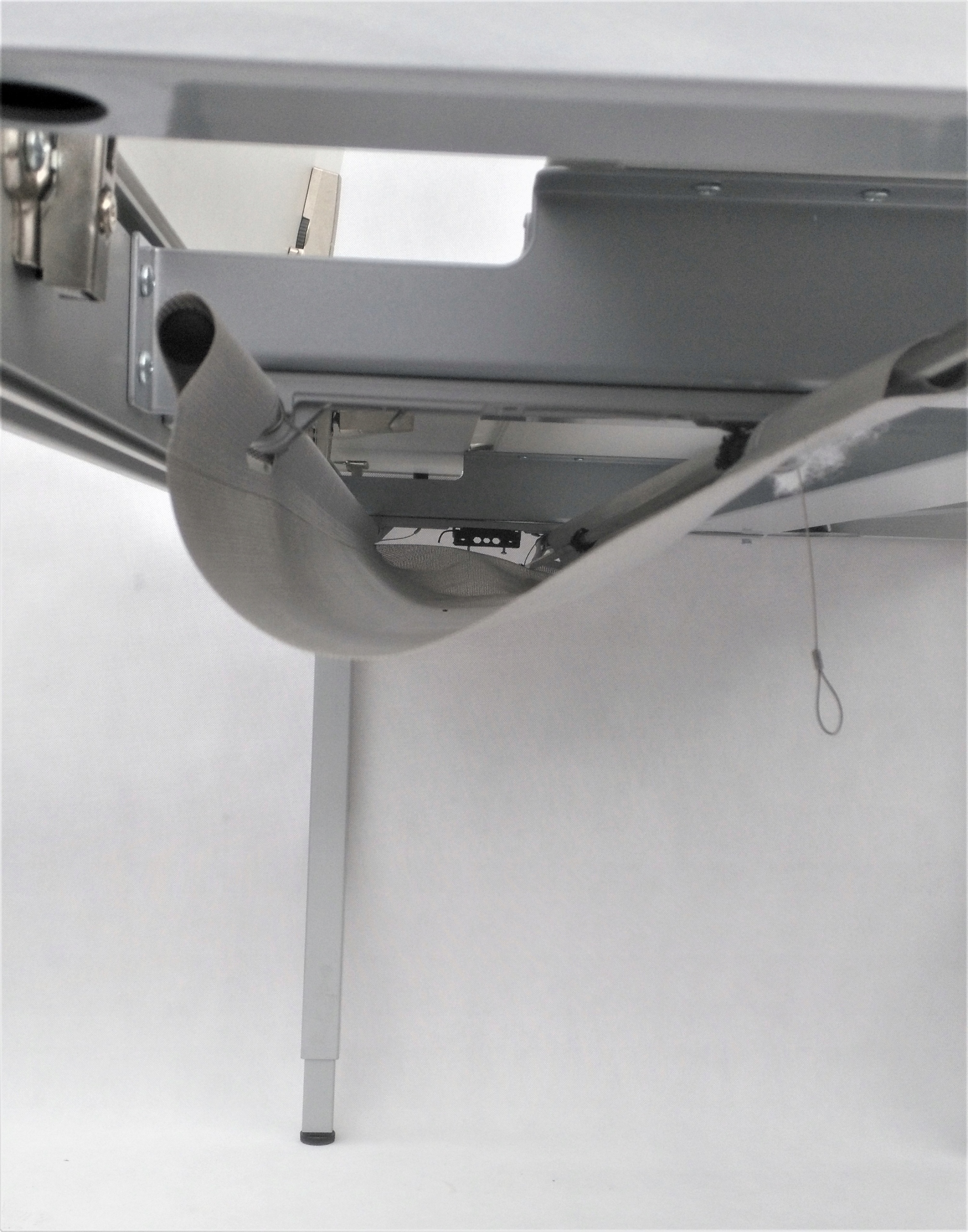 До кожного столу, придбаного в нас на аукціоні, безкоштовно надається спеціальна кришка для кабелю, яку видно на фото.