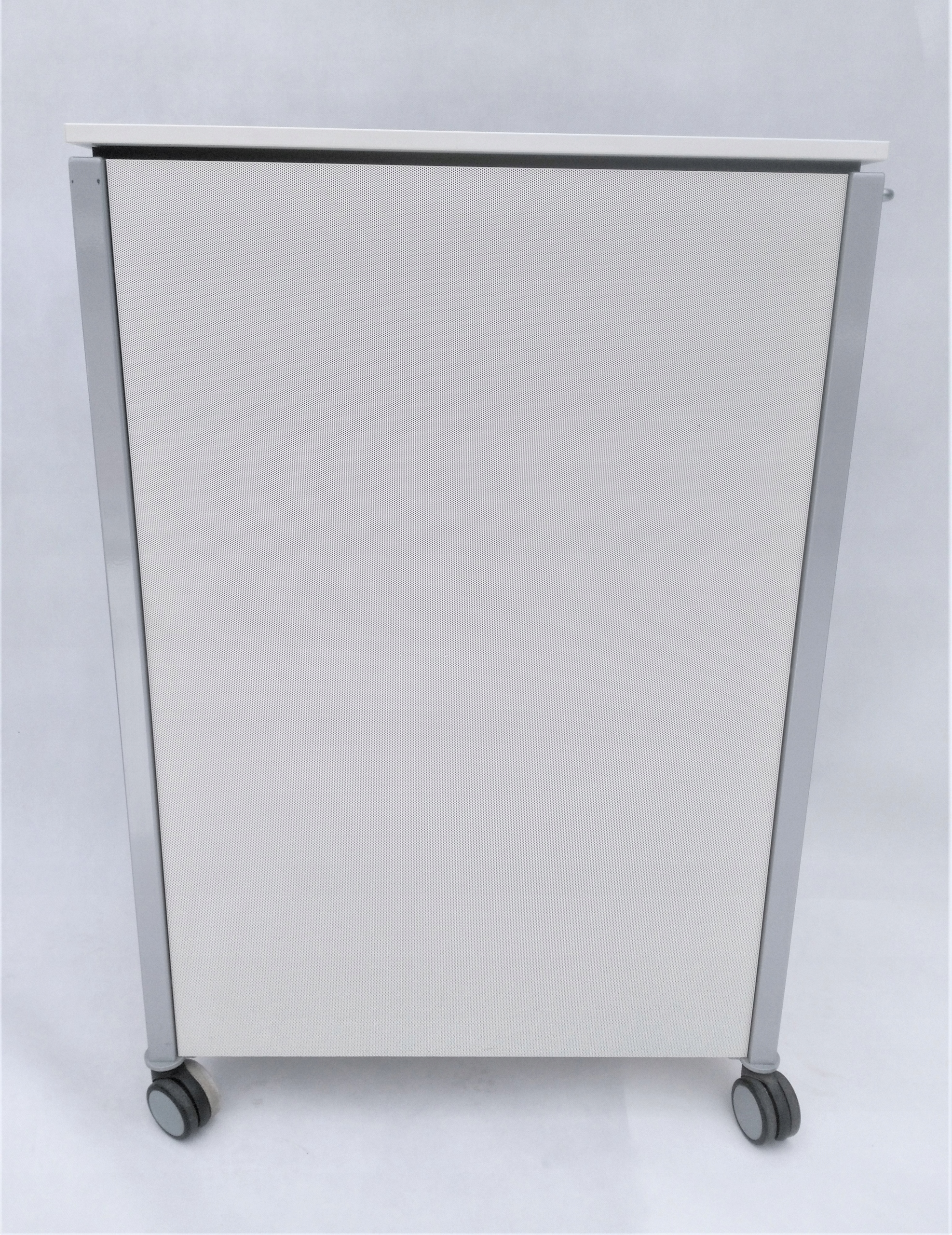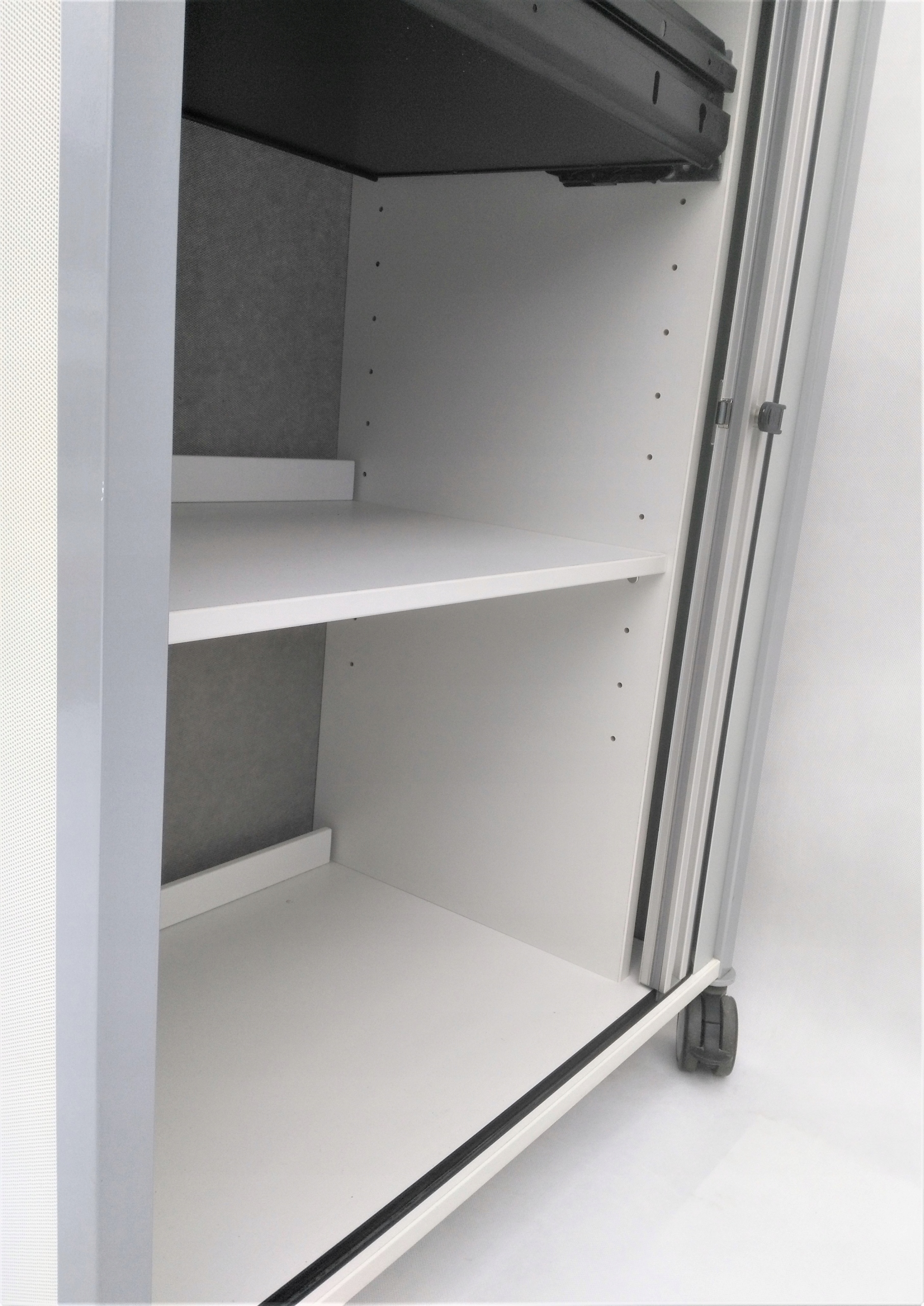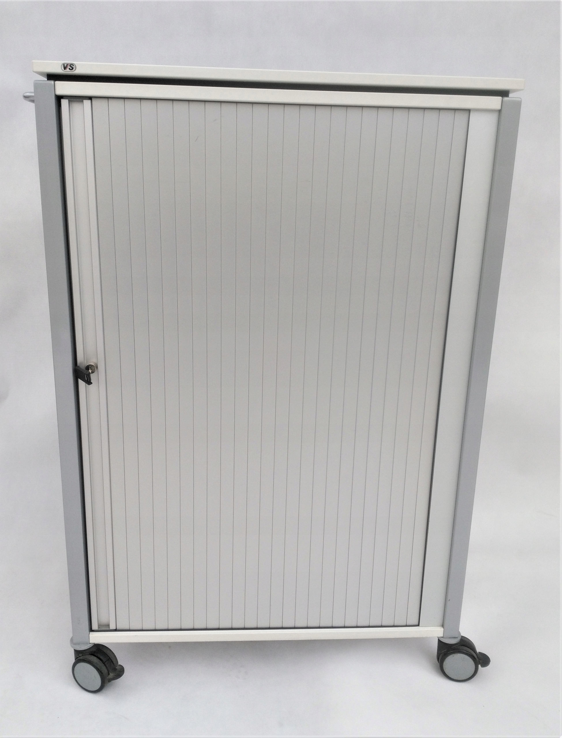 Практичний комод від VS виготовлений з високоякісних міцних матеріалів. Стійкість забезпечує металевий каркас, на який кріпляться елементи шафи. Задня частина і боки виготовлені з металевої пластини з отворами, що забезпечують вільний потік повітря. Дверцята шафи - це зручний ролик, що дозволяє відкривати її навіть в невеликих приміщеннях. Завдяки зручній ручці та коліщаткам знизу переміщення шафи не складе труднощів, а замок дозволяє безпечно розмістити її. Місткий інтер'єр вміщає багато і допоможе організувати офіс. Внутрішня частина шафи оснащена двома неглибокими висувними ящиками і стійкою полицею. Органайзери в ящиках забезпечать порядок серед офісних дрібничок і паперів. Ключовий замок забезпечить додатковий захист ваших документів.