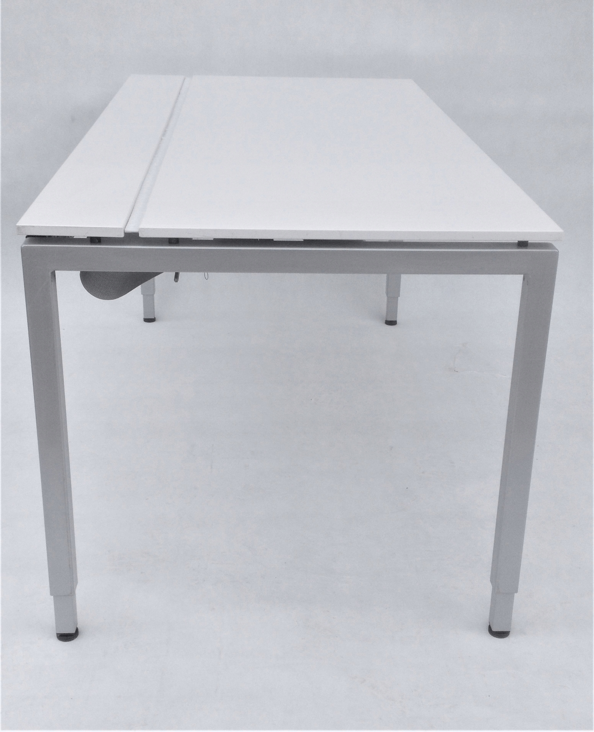 Стіл від німецької компанії VS - це поєднання простого дизайну та високоякісних матеріалів . Стільниця складається з трьох елементів - основної дошки і двох менших, що відкриваються. Використане рішення дозволяє зручно розмістити кабель. Спеціальна кришка у вигляді щіток дозволяє витягувати кабелі в будь-якому місці. Під стільницею є ручка для матеріалу, що значно полегшує дотримання порядку. Стіл оснащений ніжками, які вкручуються в металеву раму і регулюються для забезпечення повної стійкості меблів. Висота стільниці регулюється, що дозволяє комфортно працювати як невисоким, так і високим людям.