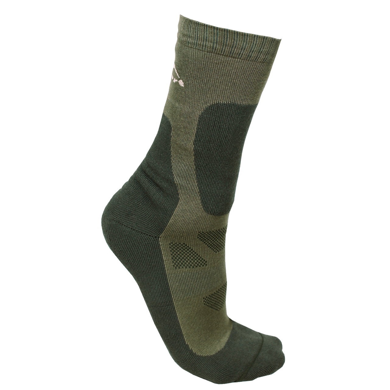 - Підсилення на п’ятах і в області носків і гомілок виконано з тришарової профільованої махри, яка амортизує удари та захищає від потертостей, а також збільшує довговічність шкарпеток