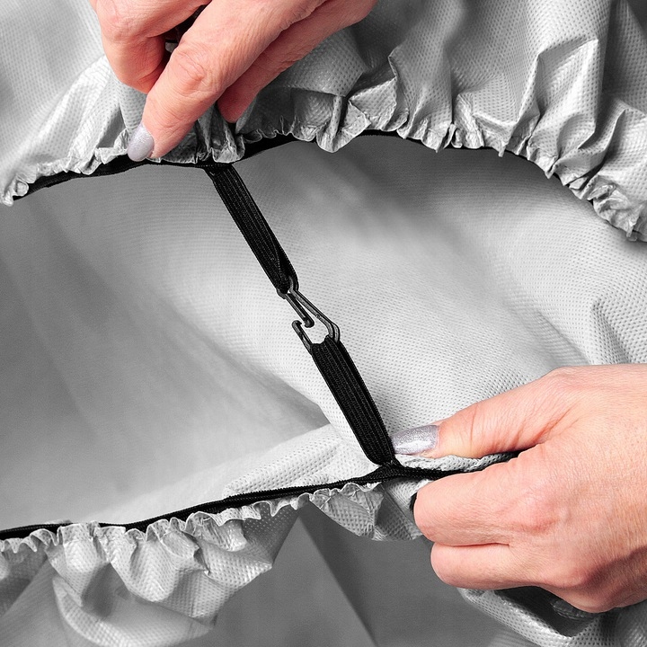 Верхня частина покриття водонепроникний і водонепроникний. Гладкий SPUNBOND всередині, не дряпає автомобіль.