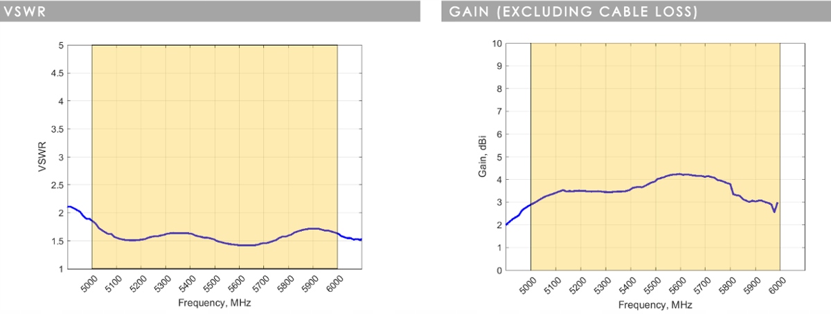 4 дБі — це пікове посилення в усіх діапазонах від 5000 до 6000 МГц