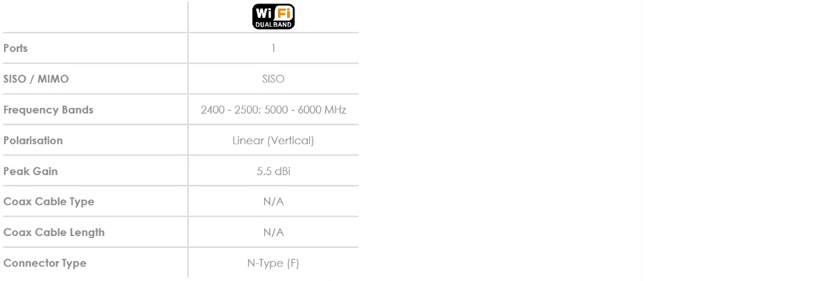 Всеспрямована дводіапазонна WiFi антена 2,4 ГГц і 5 ГГц Pointing OMNI-706 5,5 дБі