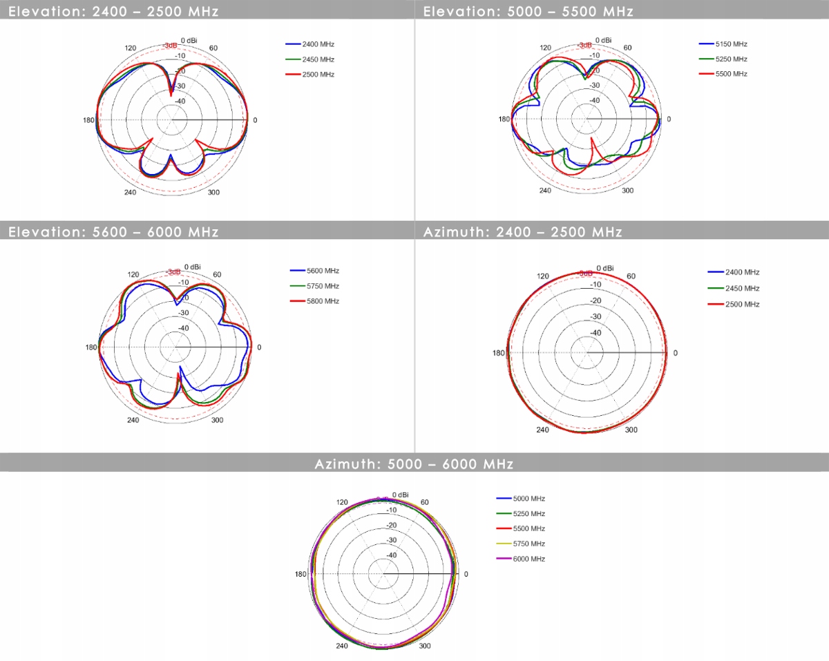 5,5 дБі — це пікове посилення в усіх діапазонах від 5000 до 6000 МГц