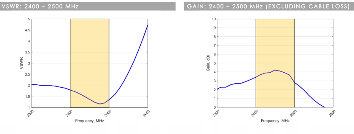 4 дБі — це пікове посилення в усіх діапазонах від 2400 до 2500 МГц