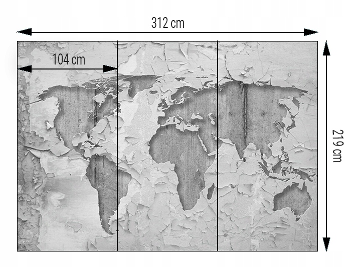 Всесвітня карта настінної фрески Всесвітній бетон 312x219