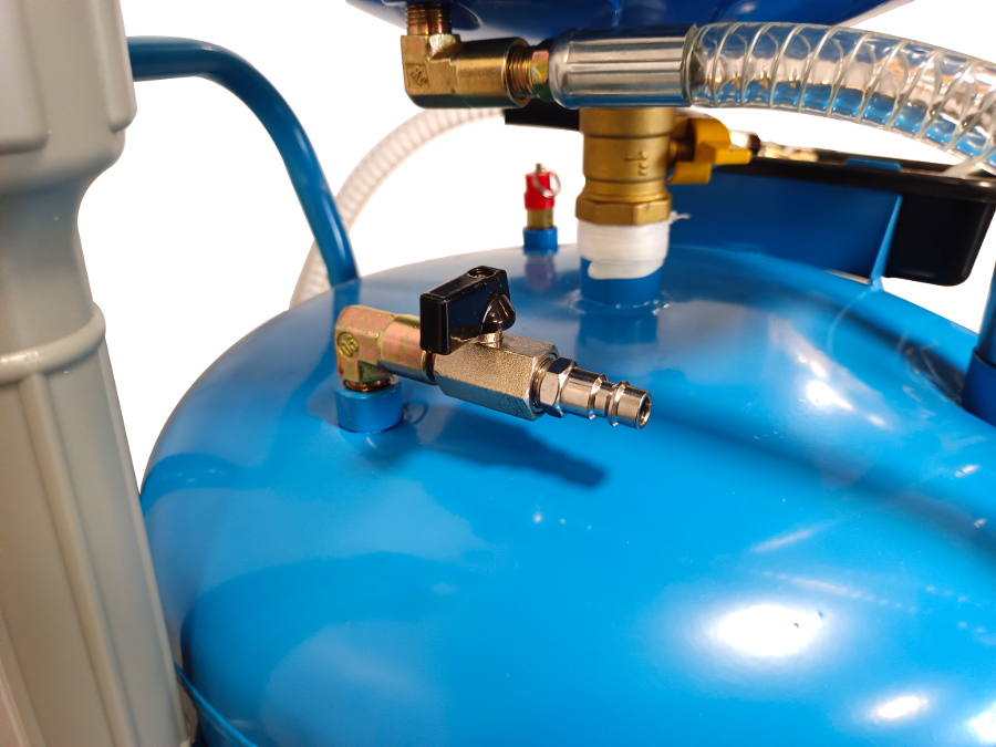 Додатковим захистом є запобіжний клапан, який регулює повітря в баку до 8 бар.