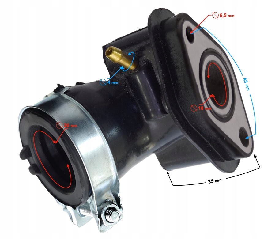 Впускна труба розроблена для скутерів 4T Gy6, наприклад Barton, Zipp, Junak та інших подібних. Товар хорошої якості марки Moretti.