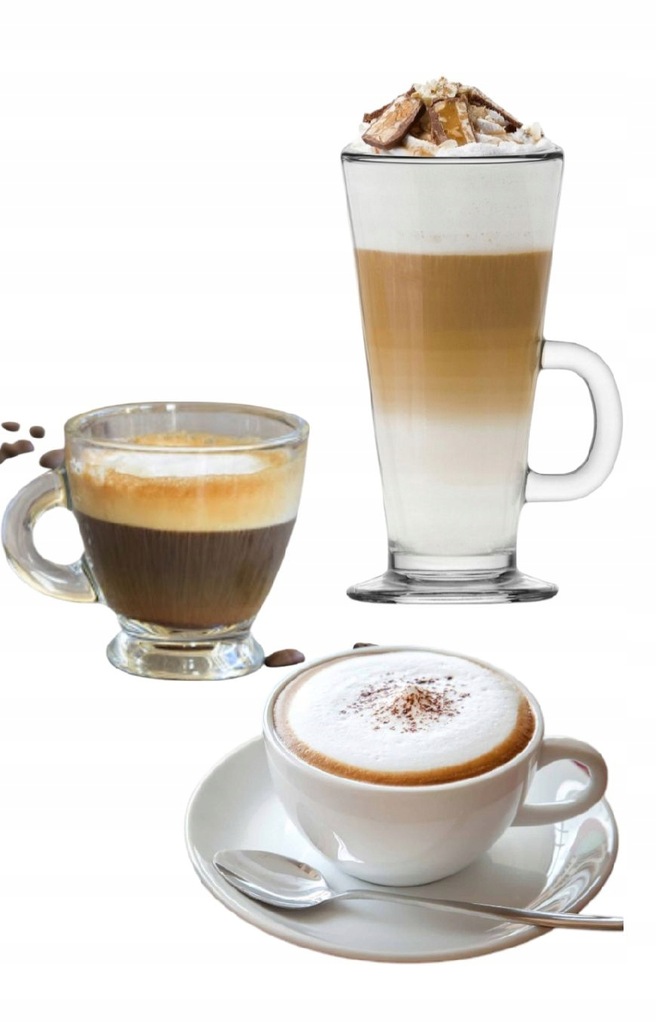 - Latte macchiato: шаруватий напій, у якому молоко та піна гармонійно поєднуються з еспресо.