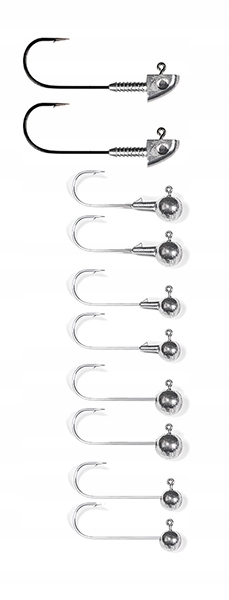 Усі голови, оснащені методом розміру та арматури, мають бурчання для підтримки гуми. Японський гачок дозволяє на 100% риболовлю. Хімічно загострене лезо гачка, вони не винищують. Розмір голови, пристосований до приманок