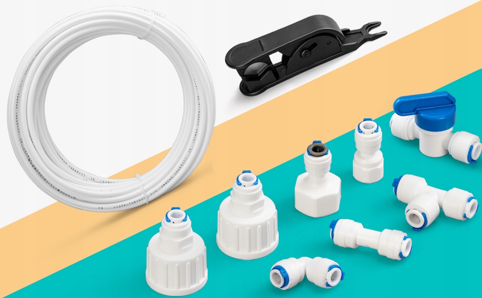 - Швидкі з'єднувачі для легко встановлення для встановлення. За допомогою різкого різака труби ви можете вирізати його на праву довжину труби