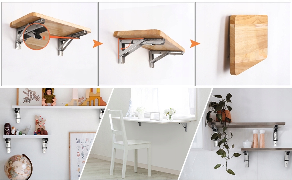 ?? широке використання? Ці складні кронштейни ідеально підходять для багатьох робіт. Ідеально підходить для магазинів, майстер -класів, пральні, човнів, будинків, дворів, причепів, кімнат, кухонь, балконів, ванних кімнат тощо, достатня для використання в якості полиці для книг, кухонної полиці та виставкової підставки.