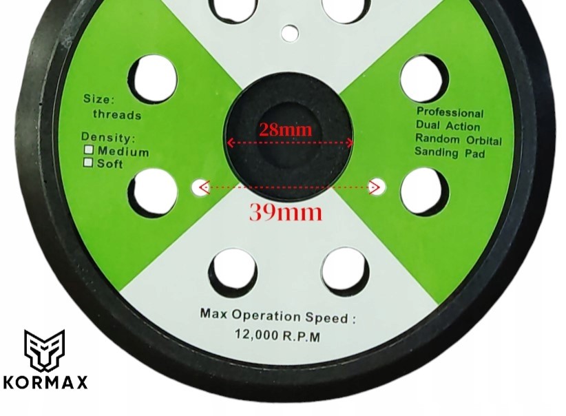 125 мм шліфувального диска для Makita, Hikoki, Dewalt був розроблений для найвибагливіших завдань шліфування, забезпечуючи ефективність та довговічність на найвищому рівні. отвори. Пластина кріпиться трьома гвинтами, відстань між гвинтами 39 мм. Середній отвір тарілки має діаметр 28 мм.