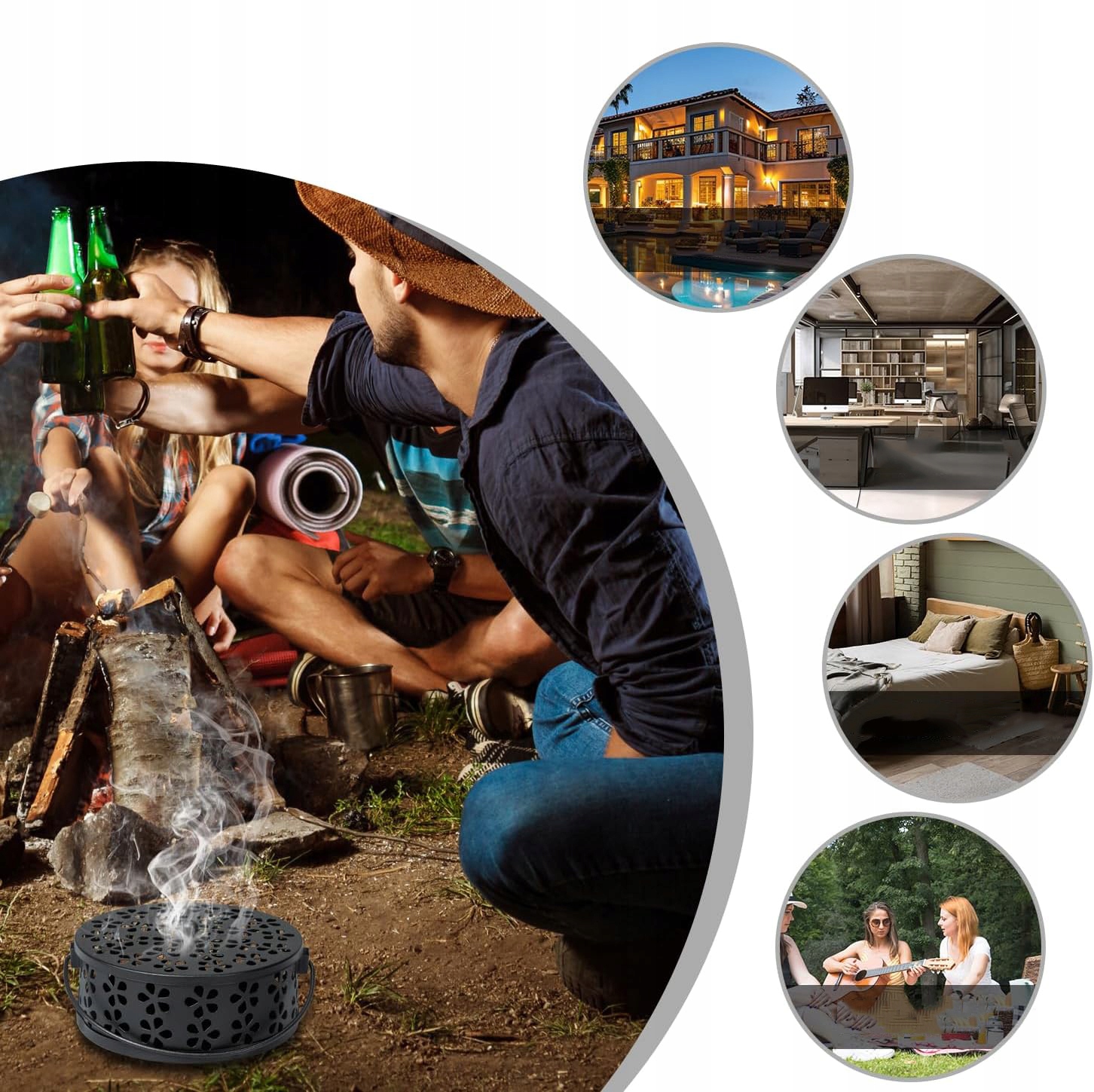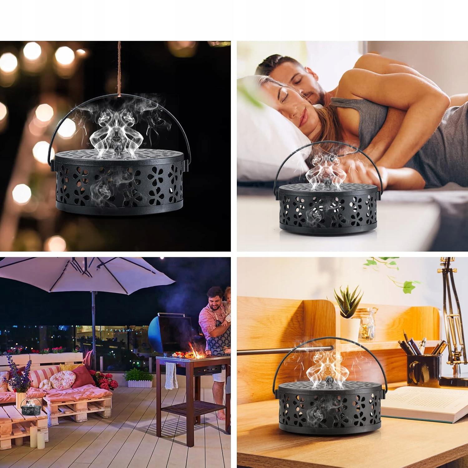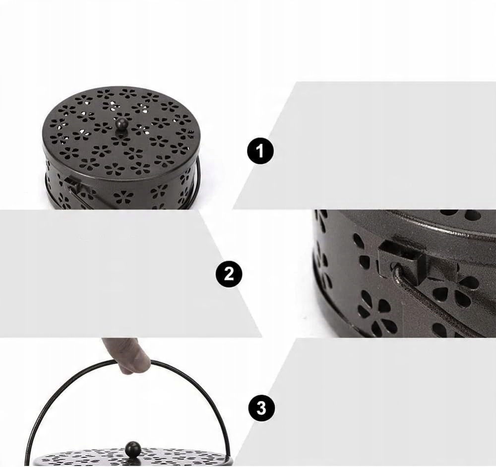 Власник пахощів має спіраль проти -віру з металевою ручкою, дозволяє вам палити спіраль до комарів у безпечній обкладинці, дизайн ручки дозволяє вам необов'язково перенести коробку на халенс, не боячись спалення, це ідеальний інструмент для рибальських заходів.