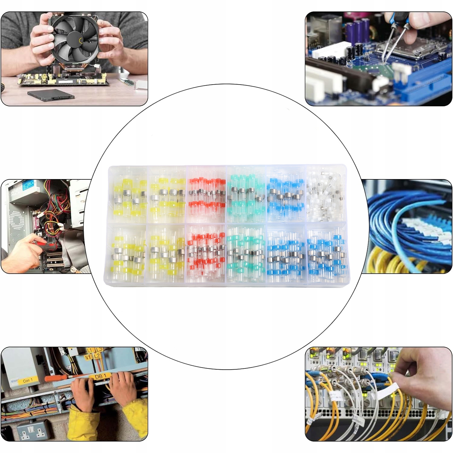 Набір швидких з'єднань з оловом у тепло -Шринковій трубці для ремонту та з'єднання кабелів. Олово відповідає за постійне з'єднання вен, які з'єднуються, і забезпечує надійний контакт вени.