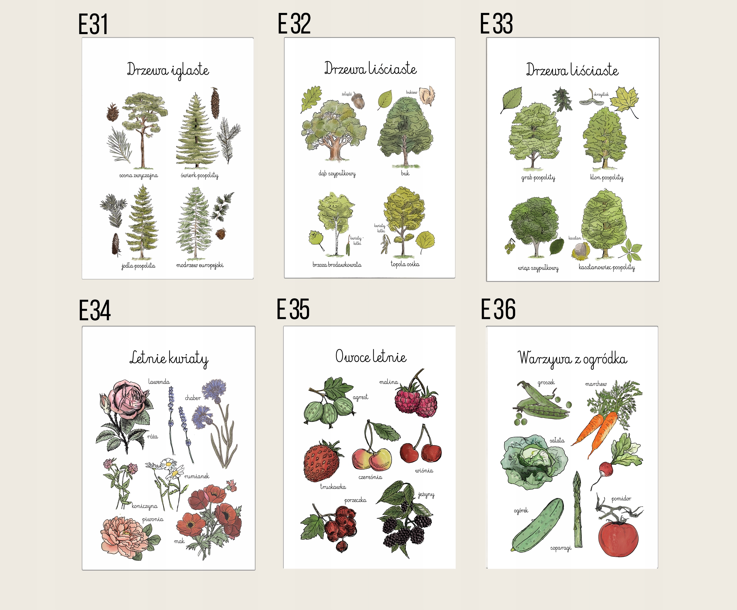 Набір 3 оригінальних, підготовлених навчальних плакатів у дусі Монтессорі
