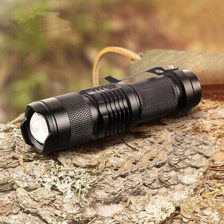 - Ліхтарик із регульованою світловіддачею, металевим корпусом і застібкою для пояса