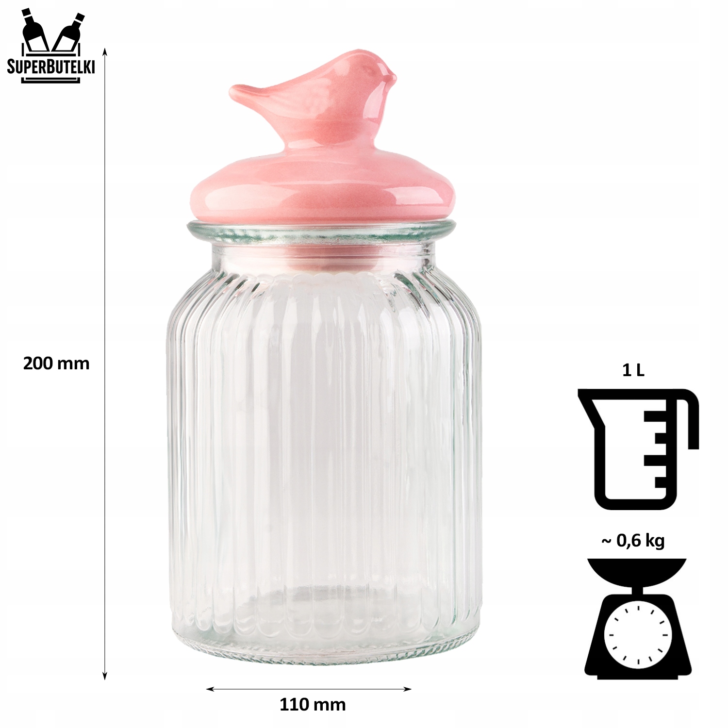 ✅ ємність: 1 l, Висота банки з кришкою: 20 см, Ширина: 11 см, Діаметр інфузії: 7,3 см, вага: ~ 0,6 кг
