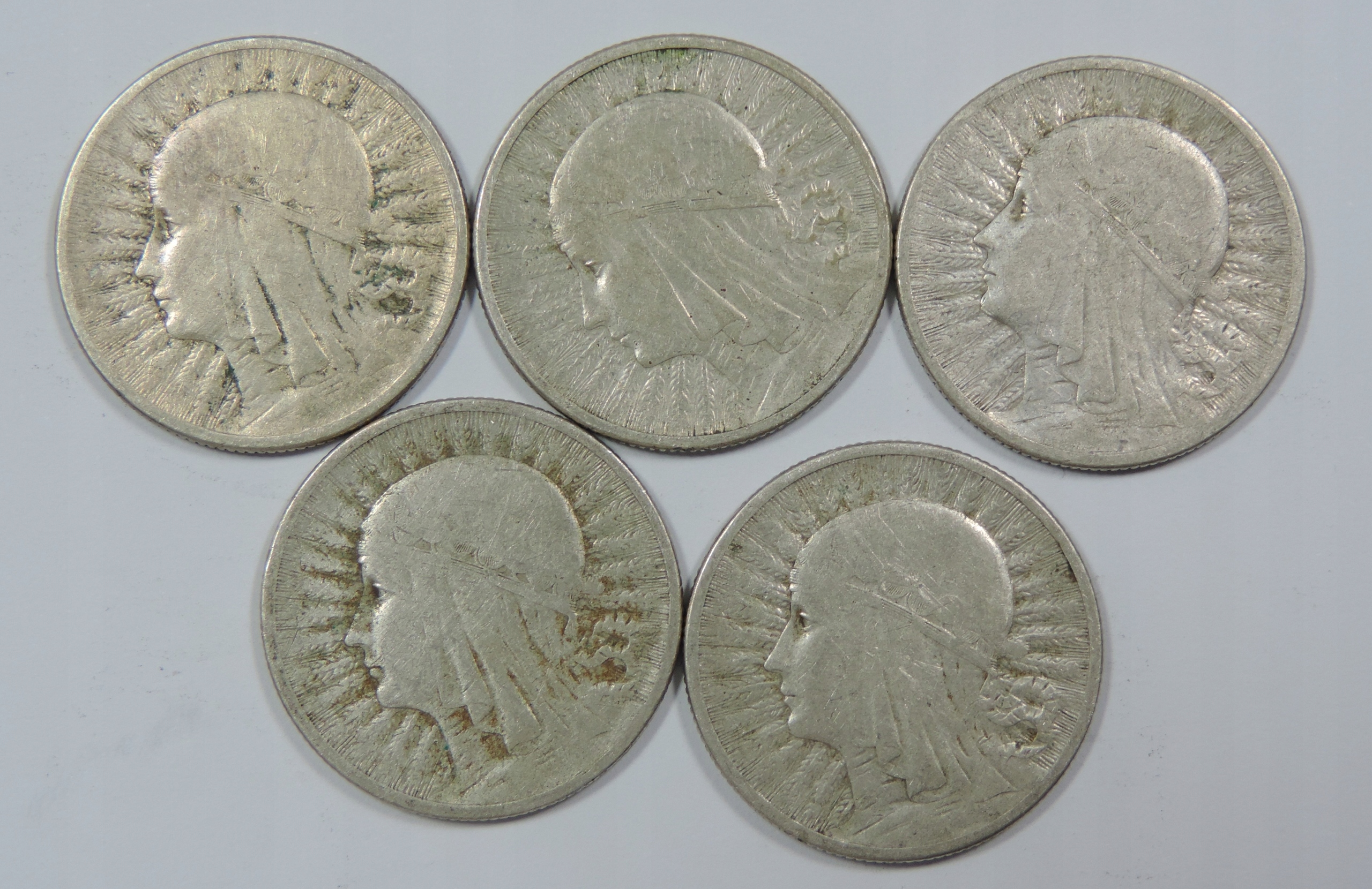 Встановіть 5 -кратну срібну монету - Ag Coin - 5x 2 Zlotys - Жіноча голова -OY675