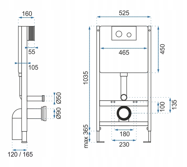 Рамка має набір труб, які використовуються для підключення миски та встановлення прихованого набору.