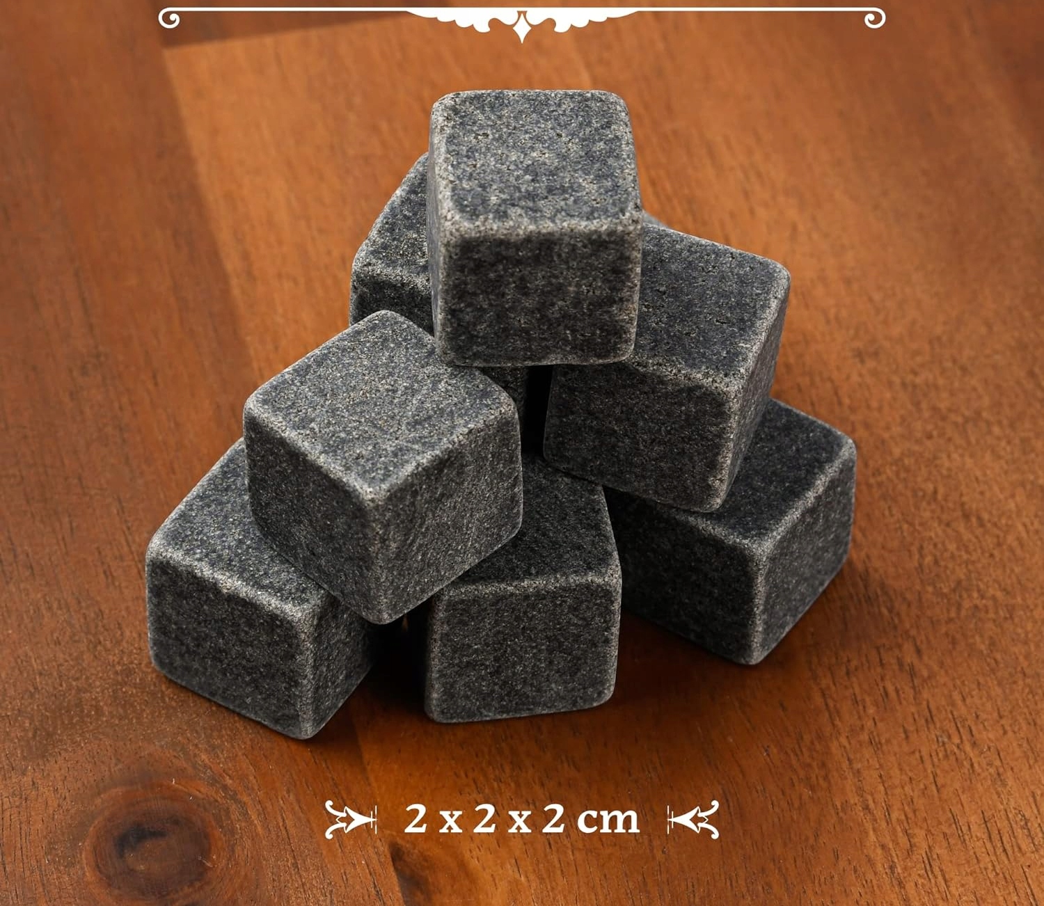 ➡ задоволення страждає. Завдяки їм, дегустація бурбону, єдиний Мальта або шотландський залишається чистим та нездоровим. Набір також підходить для інших напоїв, таких як горілка, коньяк, ром чи вино. Кількість каменів у склі можна відрегулювати залежно від розміру напою.