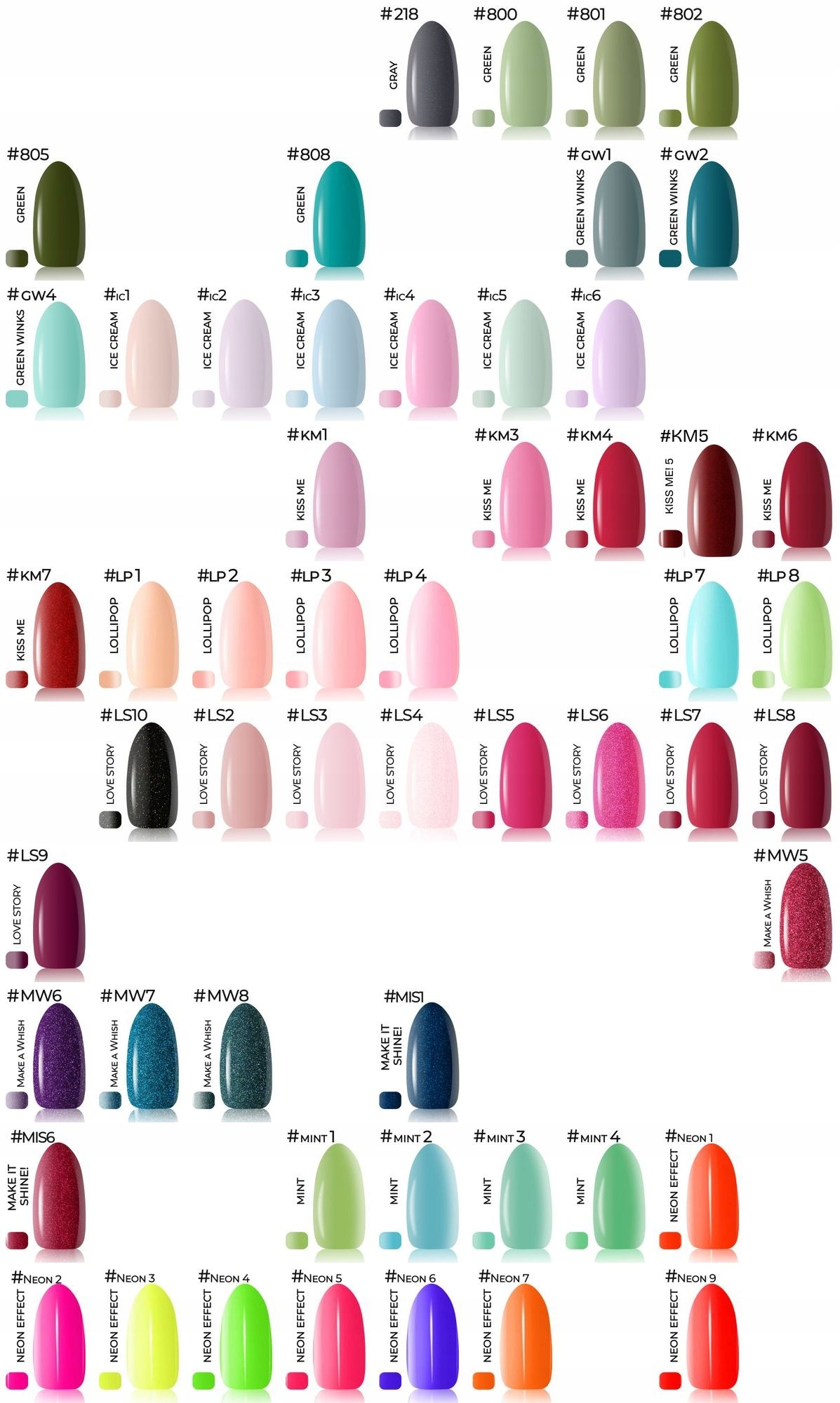 Вибираючи кольори у повідомленні продавцю, будь ласка, надайте кольорові номери (без назв колекцій), які знаходяться у верхньому лівому куті кожного кольору лаку. Це суттєво прискорить процес замовлення.