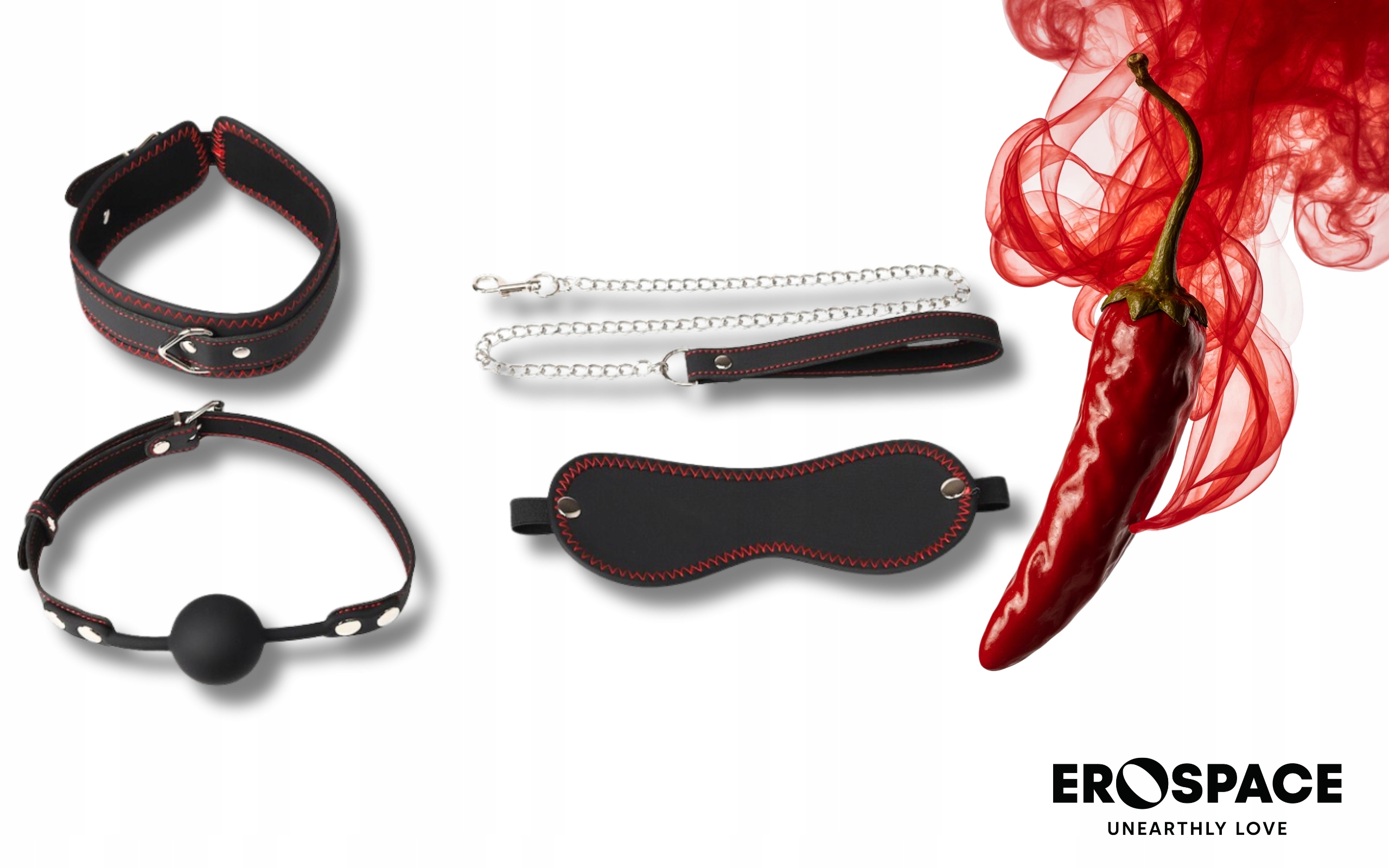 Виготовлений з м'якого матеріалу з червоним зшиванням, повністю відрізується від зорових подразників. Завдяки цьому кожен дотик стає сильнішим, а емоції - більш інтенсивними.