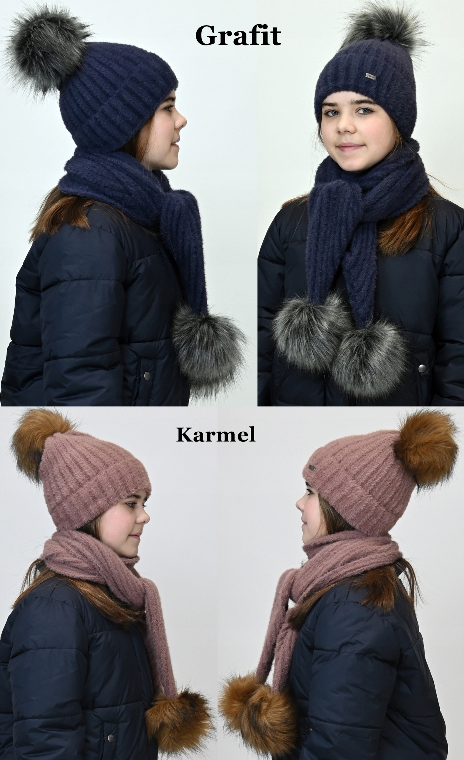 - Ширина шкали 25 см з великим шарфом з двома помпомами. Дуже тепла і приємна модель.