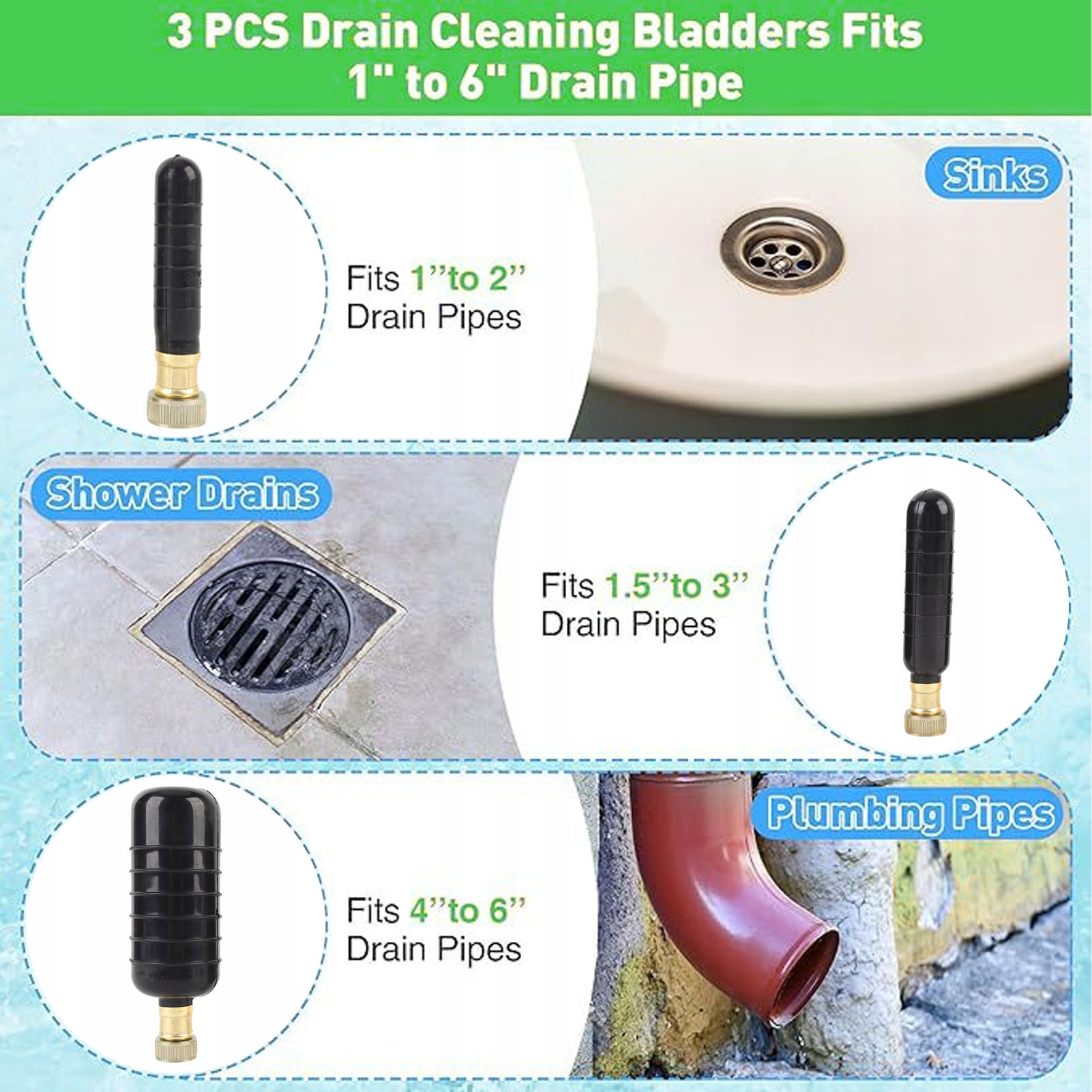 3. Варіанти універсального розміру: Пакет містить три різні розміри гумових лопатей, придатні для стоків з діаметром від 1 до 6 дюймів, ідеально підходить для очищення різних розмірів основних стоків та стічних вод зовні.