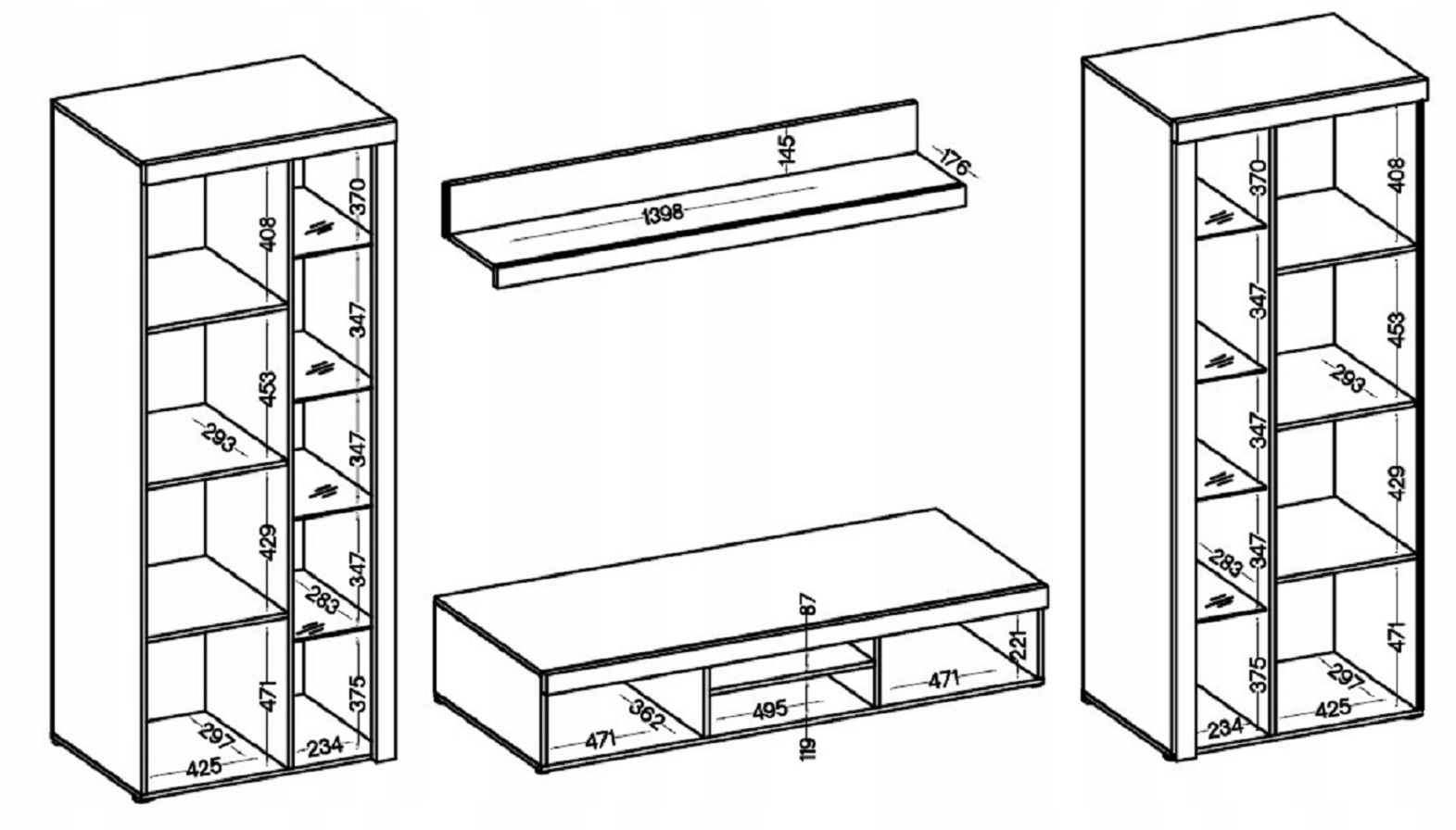 Furniture set Rumia XL> wall unit + chest of drawers + bench + large wardrobe h1>