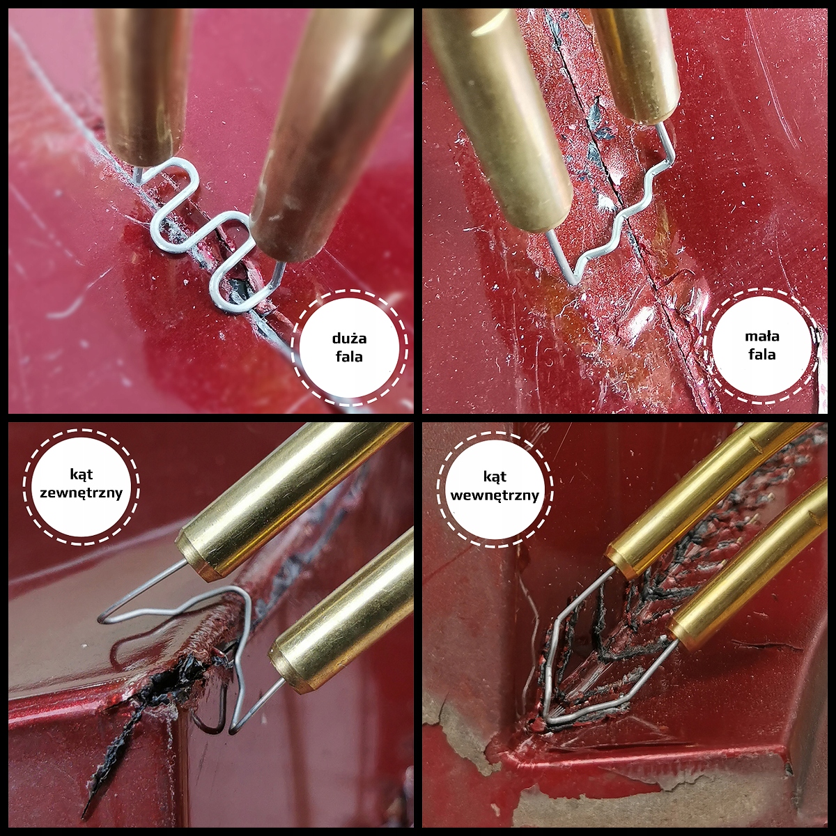 The binding set is designed for welding bumpers, fenders and wheel arches, housings and engine covers, bubbles, side slats, thresholds, lamps, bumpers, all flexible elements of the dashboard and other elements of the interior of the car, mirror enclosures, engine, engine, engine enclosures Family scooters, quads as well as all Пластикові корпуси побутових приладів тощо